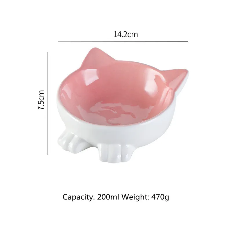 Cute Cat Bowl Ceramic Tilted Kitten Pet Bowls for Small Dogs Raised Cats Water Food Bowls Feeding Plates Eating Bowl Feeder