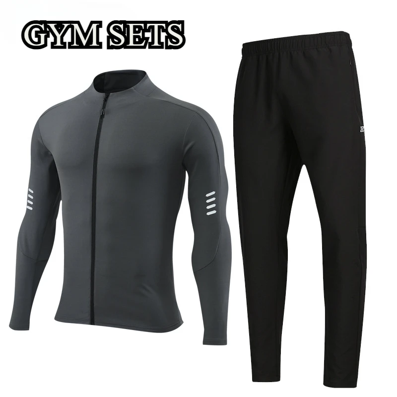 Fitness Clothes Men’S Ice Silk Quick-Dry Sportswear Set Summer Long-Sleeved T-Shirt Morning Running Training CLOTHING