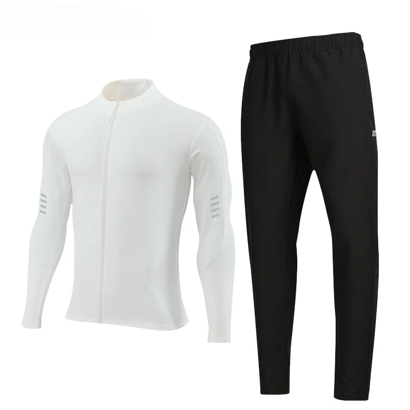 迈霸秋季男款时尚休闲套装潮流立领长袖运动速干裤子修身弹力上衣