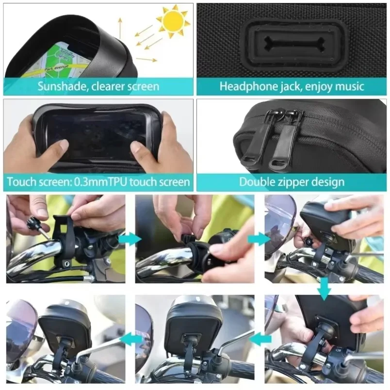 Handlebar Bag Phone Holder Bike Front Frame Phone Bag Waterproof Bicycle Motorcycle Cycling Bag Rotatable Cell Phone Holder