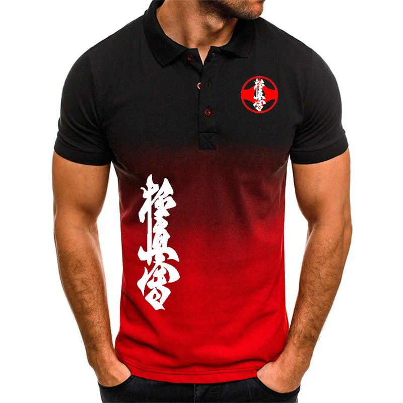 Kyokushin Karate Printed Lapel men T shirt Men POLO shirt Color contrast design Comfortable breathable Harajuku men’s POLO shirt