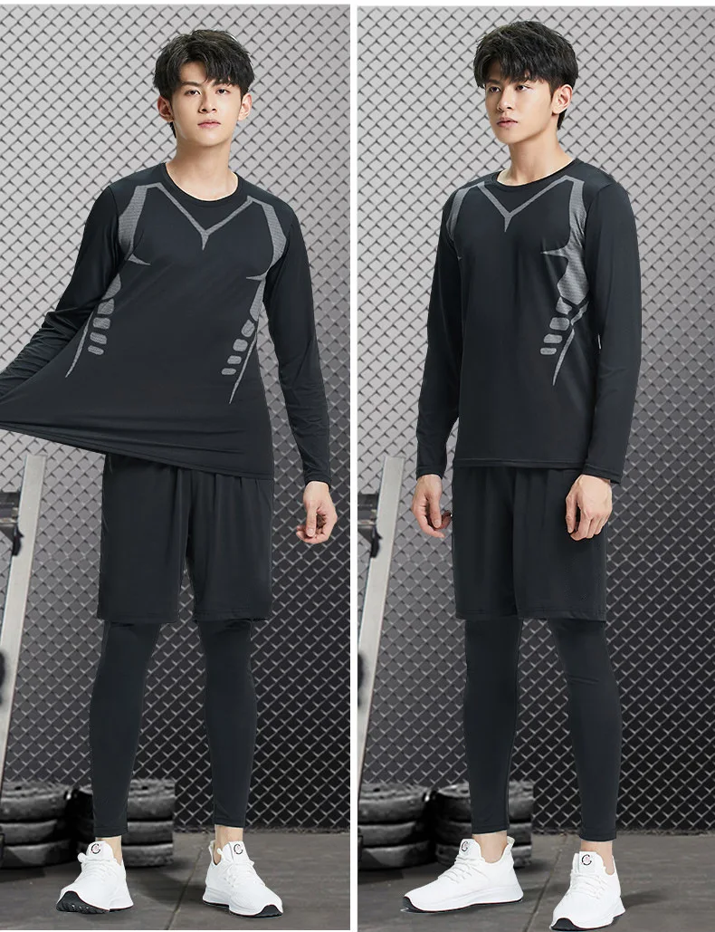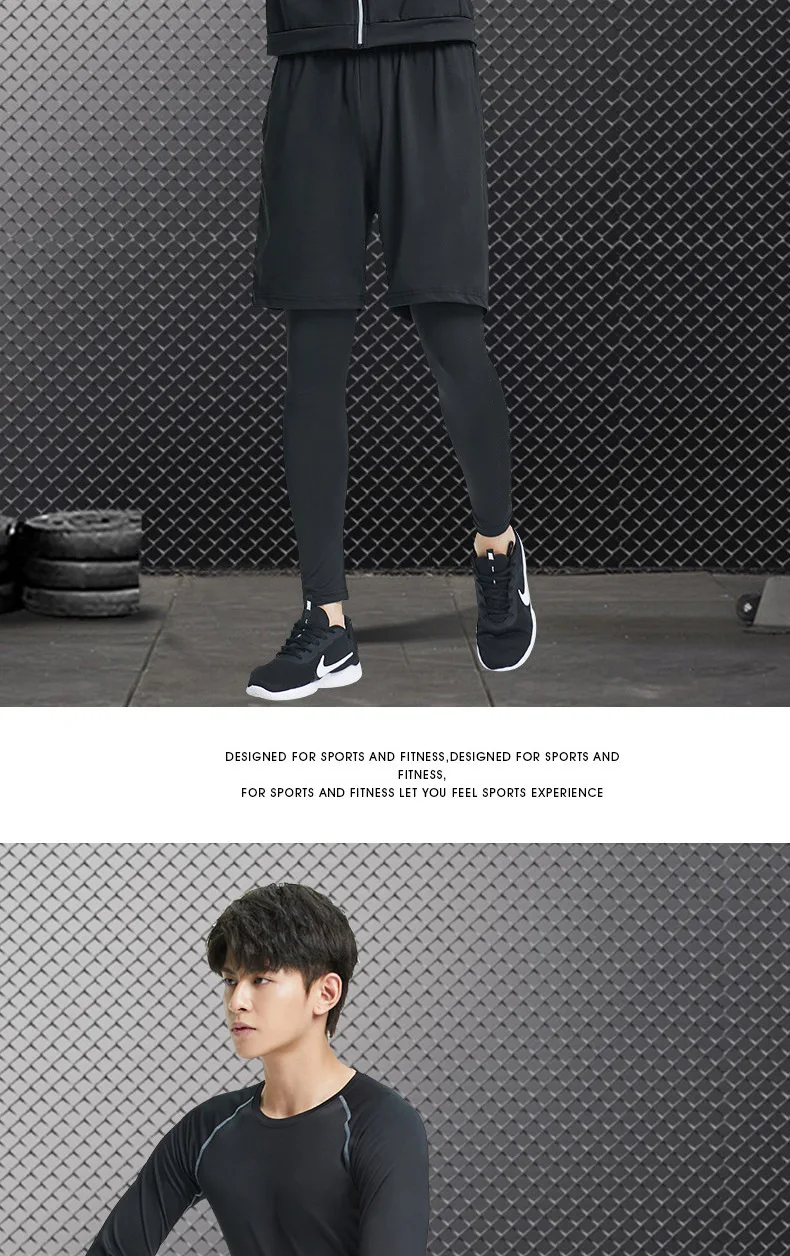 Mens Track Suit Compression Set Running Tights Workout Fitness Training Short Sleeve Shirts Sport Suit Rashgard Kit Jogging
