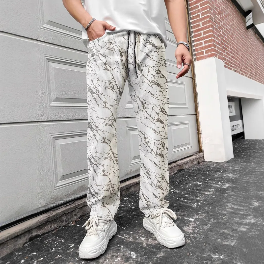 New spring and autumn men’s explosive corduroy casual pants leopard print daily wear pants