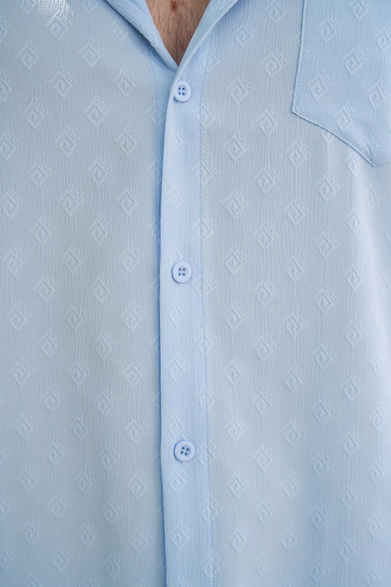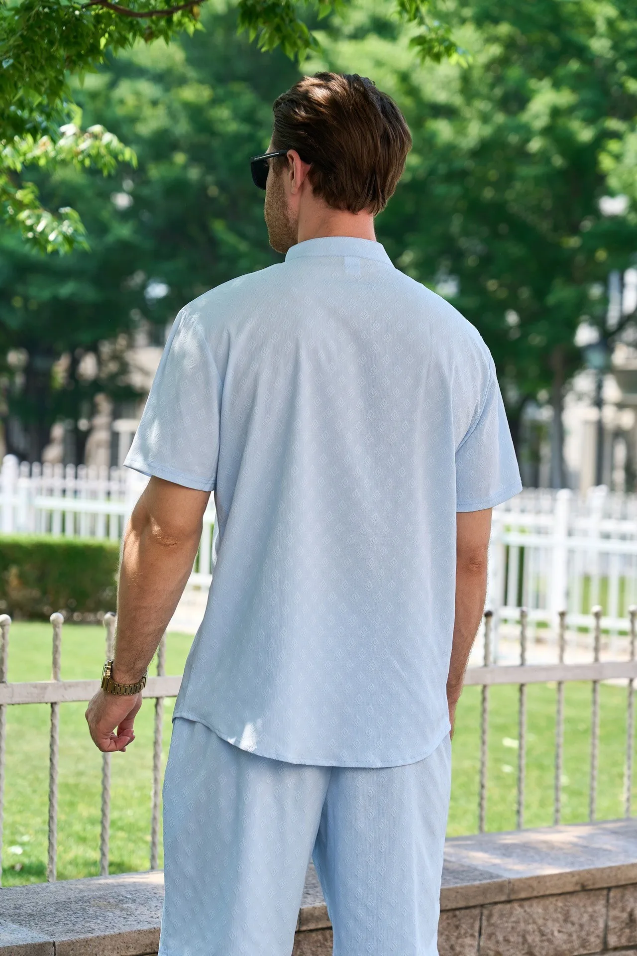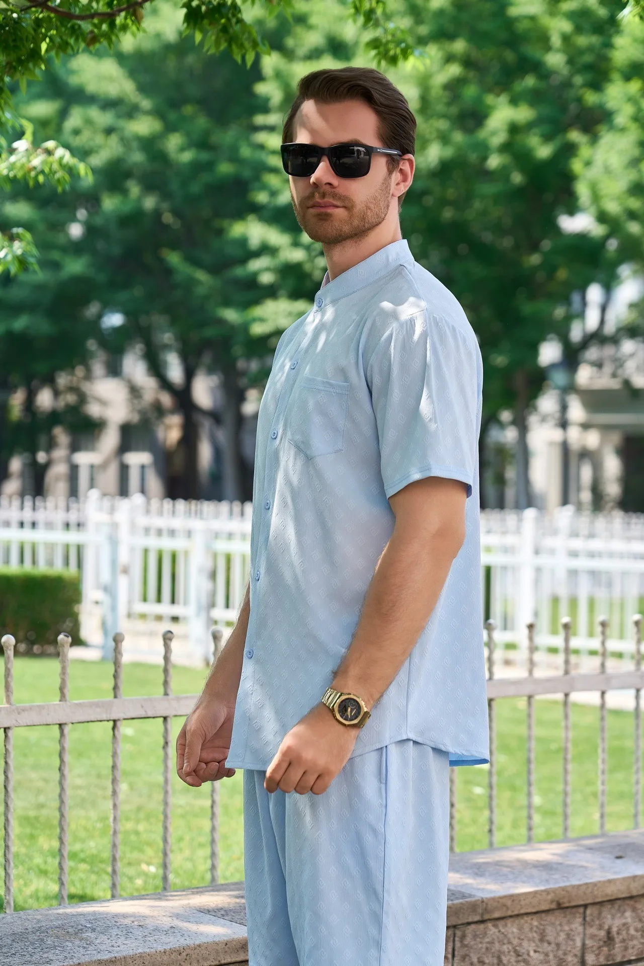 New summer European and American men’s jacquard shirt, checkeredcasual stand-up collar pocket cardigan short sleeve and shortset