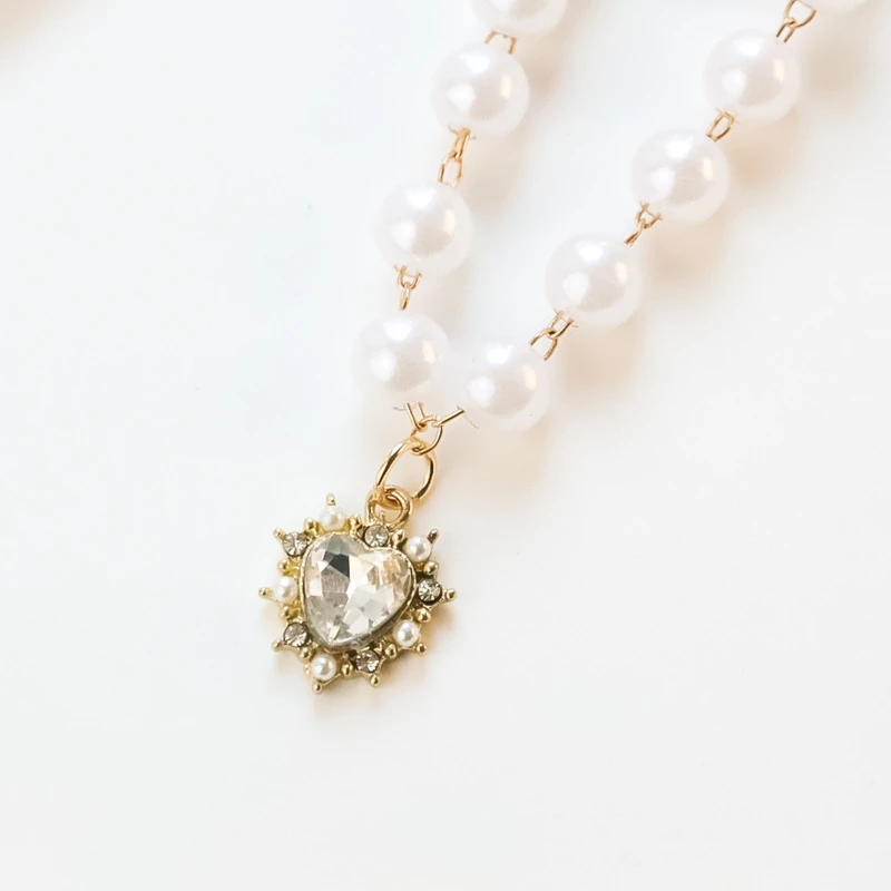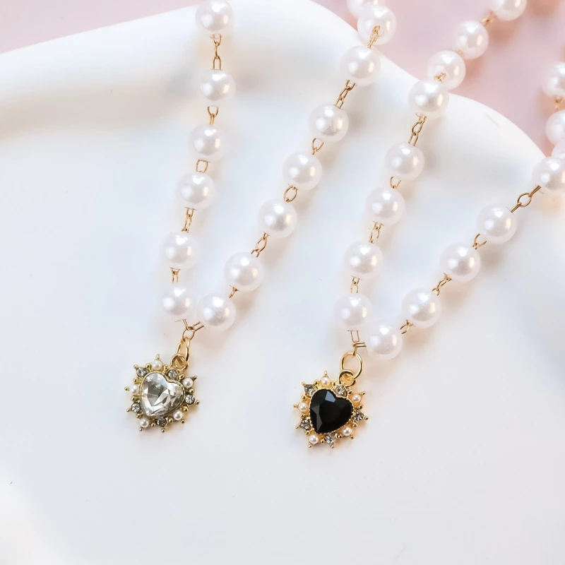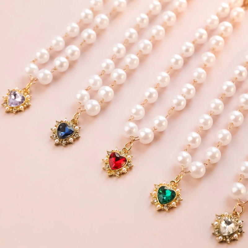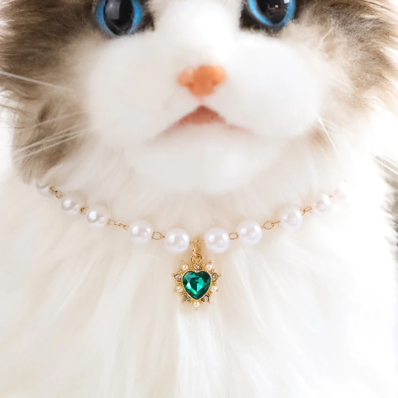 Pearl Chain Accessories for Cats Zircon Heart Pet Products Small Medium Puppy Neck Wear Wedding Birthday Gift Pet Dog Collar