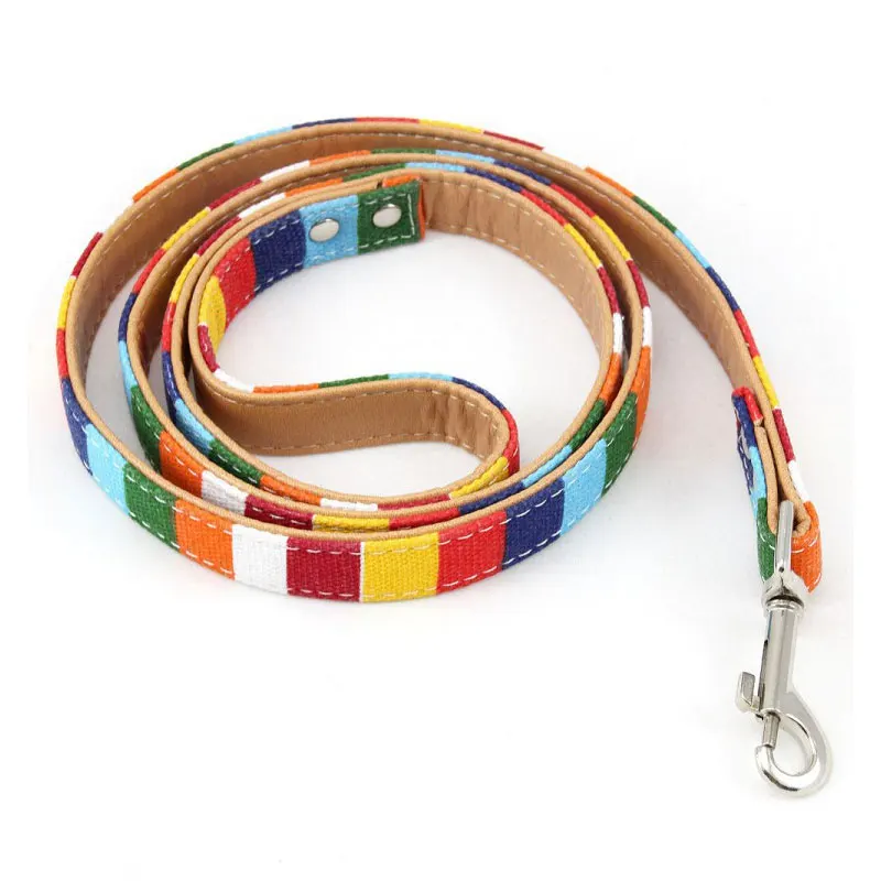 Rainbow Color Pet Dogs Collar Harness Set 120cm Puppy Leash Outdoor Walking Exercise Dogs Supplies PU Anti-Escape Cat Collars
