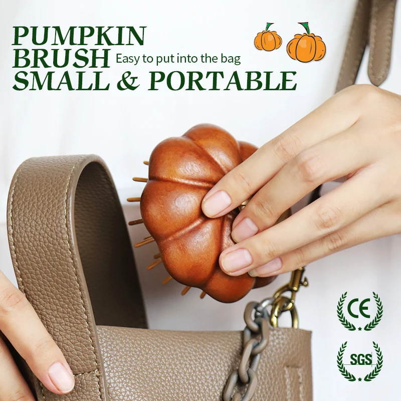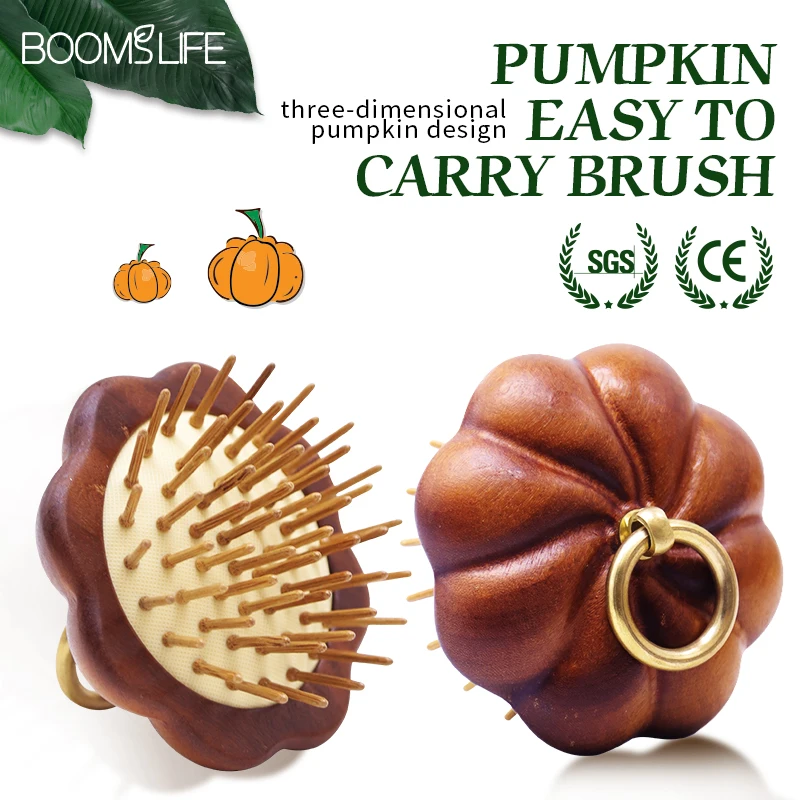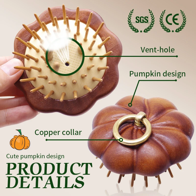 Sandalwood Mini Hair Brush Women Portable Pocket Hair Comb Head Scalp Massage Brush Wide Tooth Comb New Design Pumpkin Style