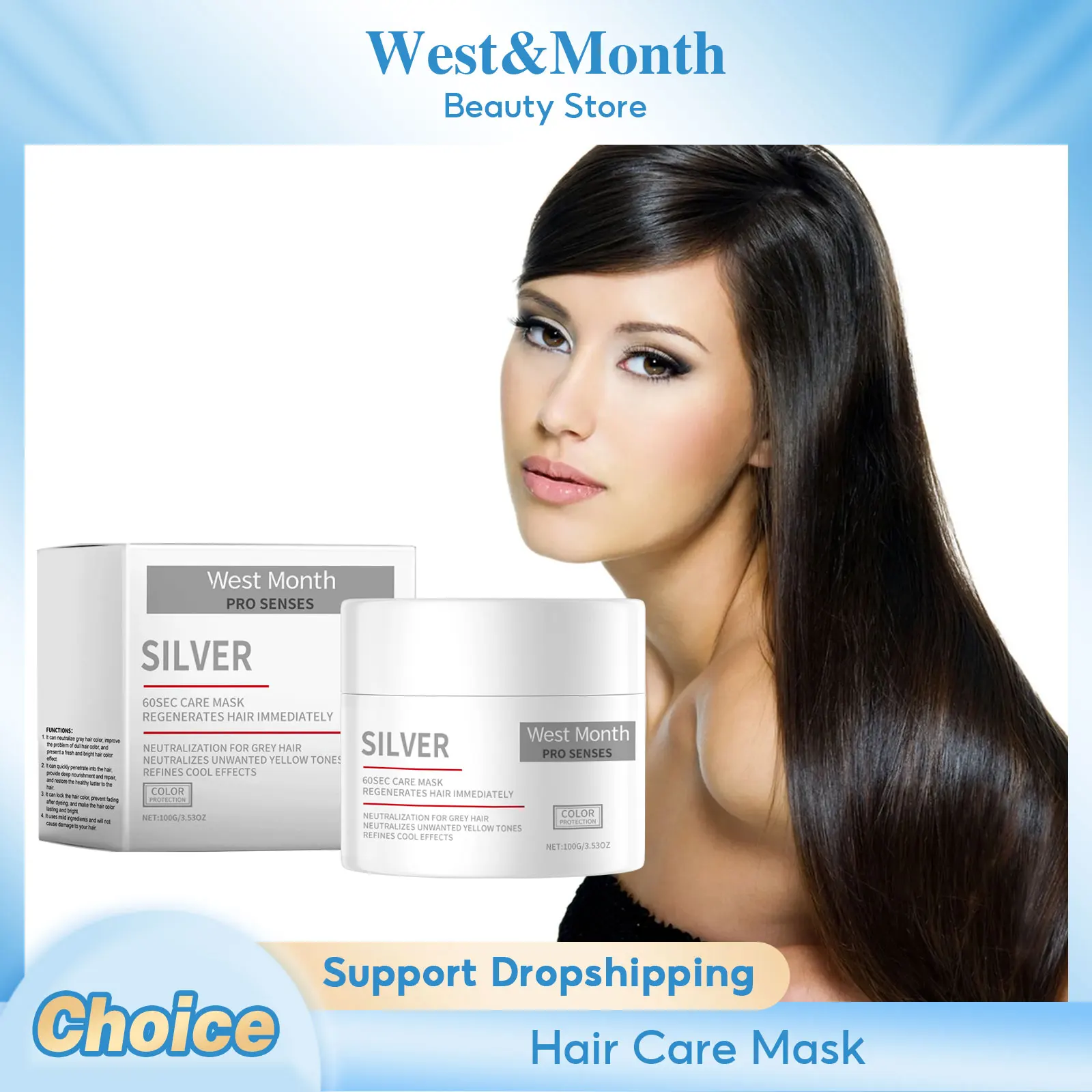 Silver Hair Mask Remove Yellow Tone Reduce Discoloration Smoothing Straighten Repair Damage Dry Frizzy Soft Moisturize Hair Care