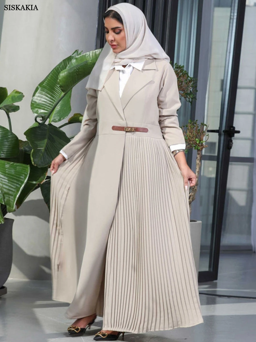 Siskakia Fashion Turn-down Collar Abayas For Muslim Woman Solid crimp Urban Casual Dubai Moroccan African Arab Clothing 2024