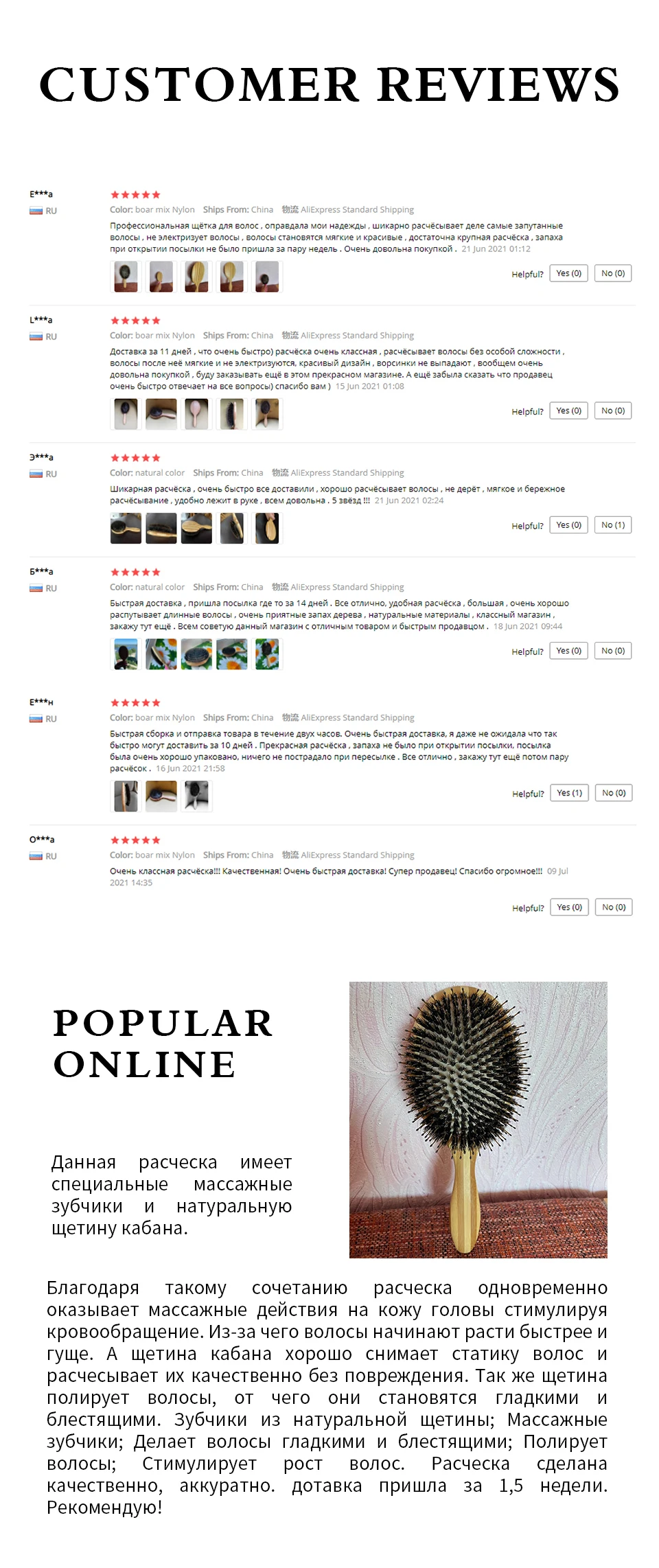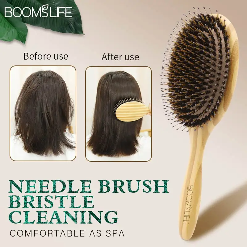Soft Boar Bristle Bamboo Hair Brush Women Massage Scalp Wood Comb for Hair Beauty Barber Accessories Cepillo Para Cabello