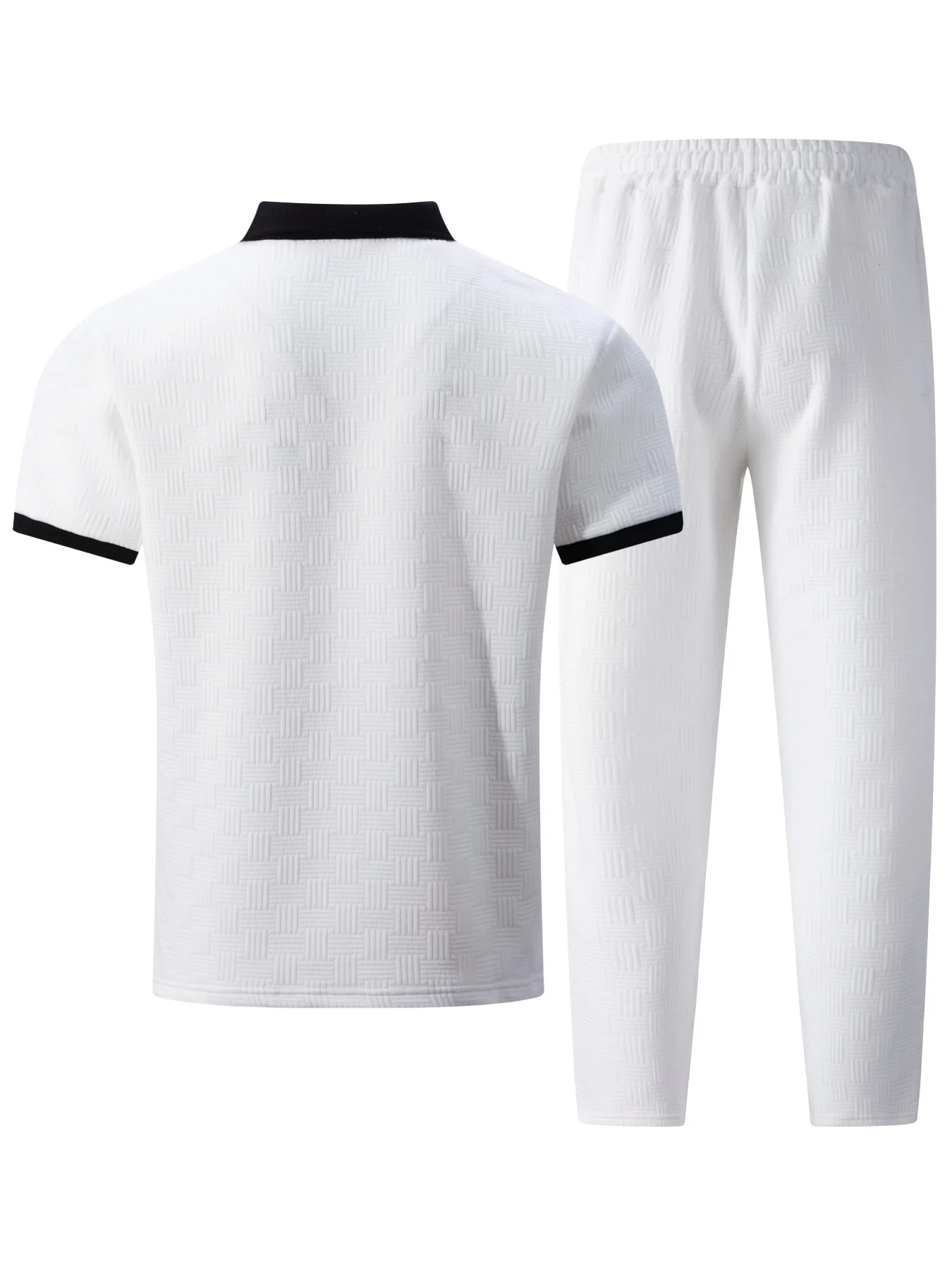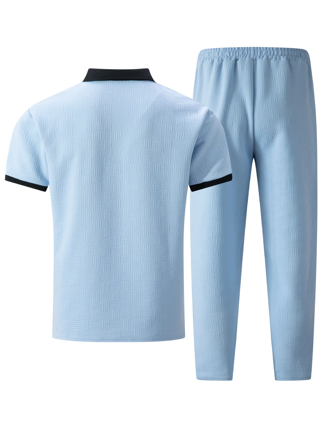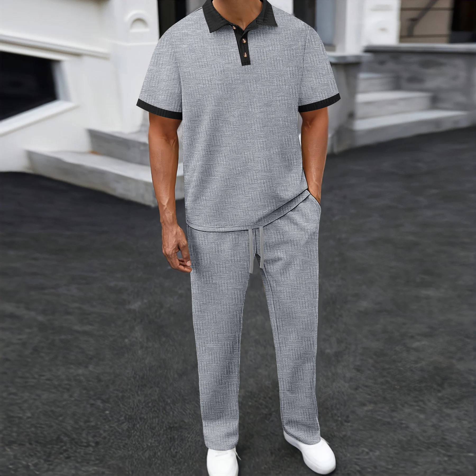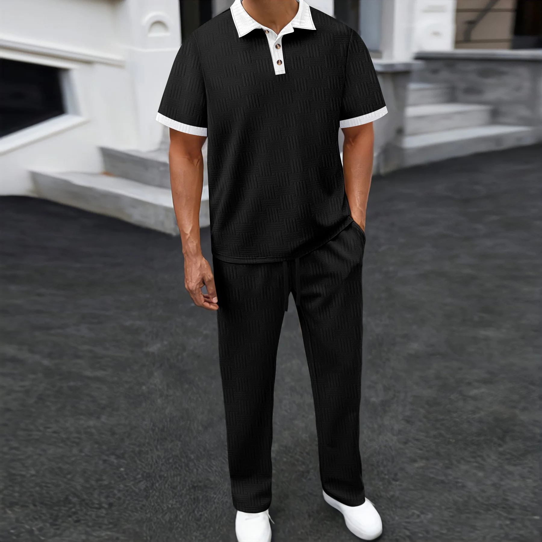 Spring/Autumn 2025 Men’s set: Casual color-blocking trendy short-sleeved Polo shirt and drawstring long pants