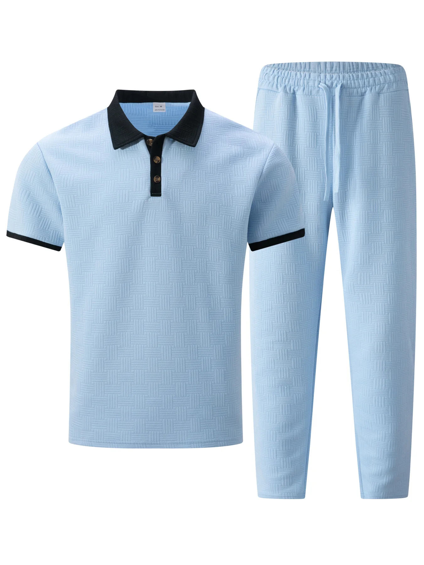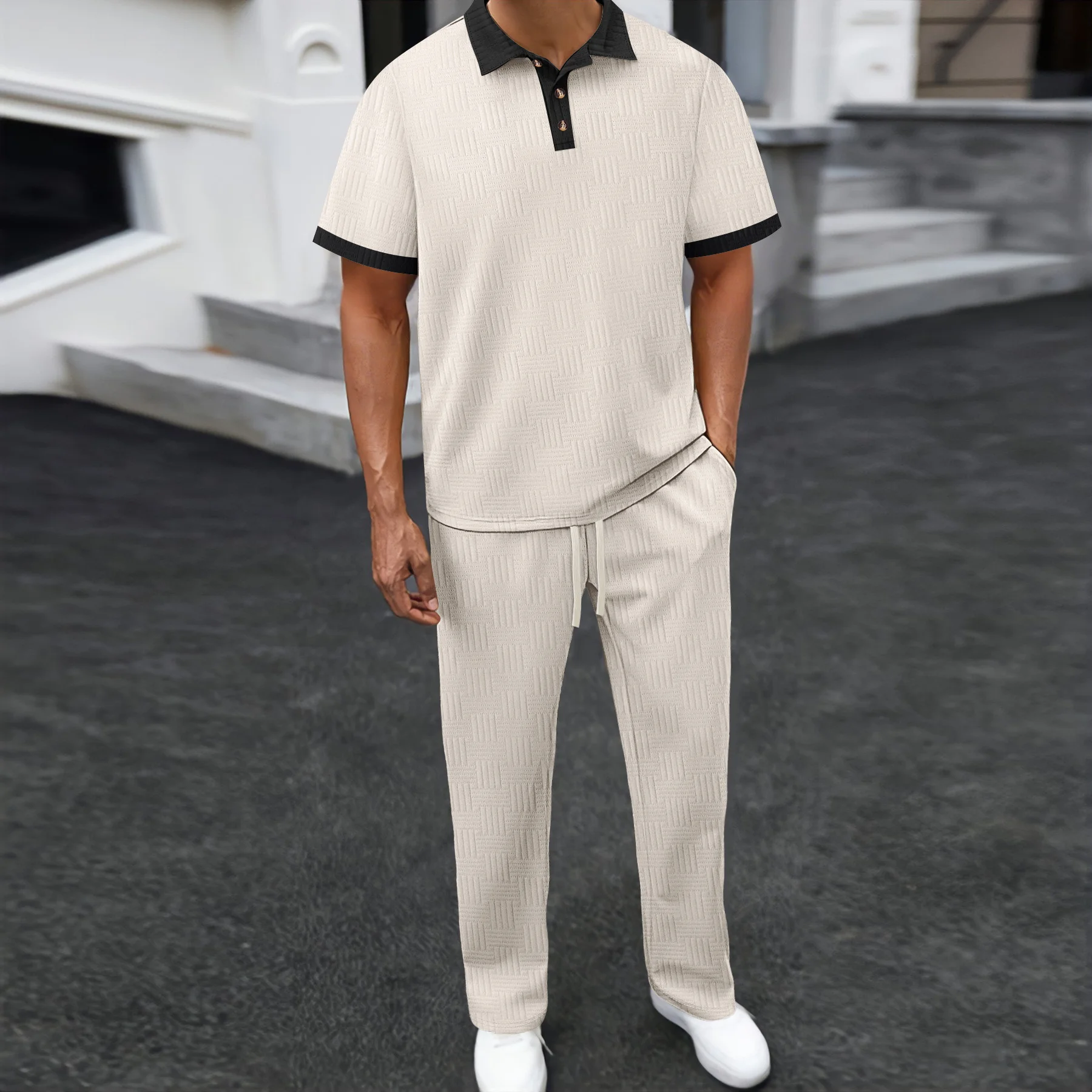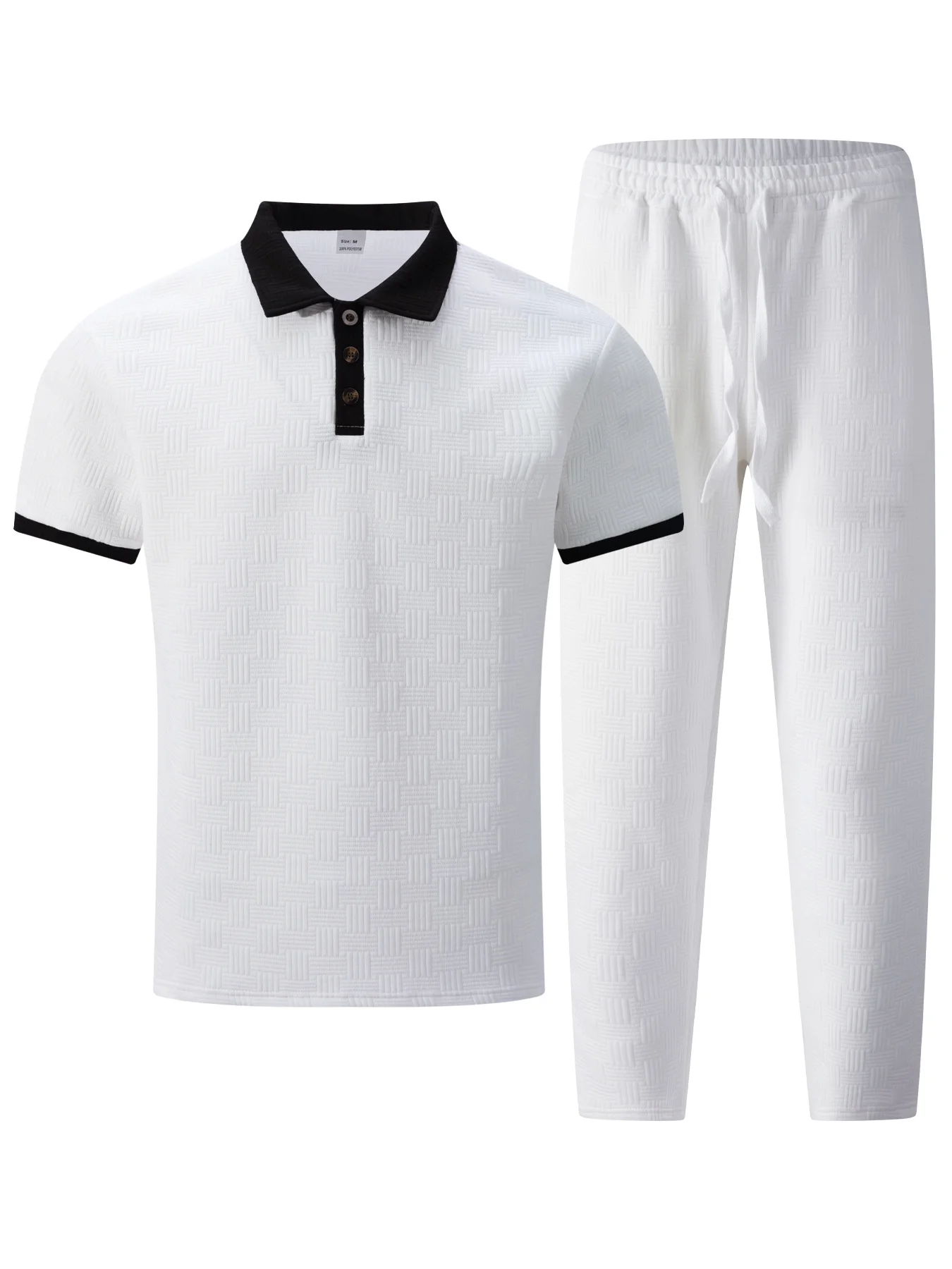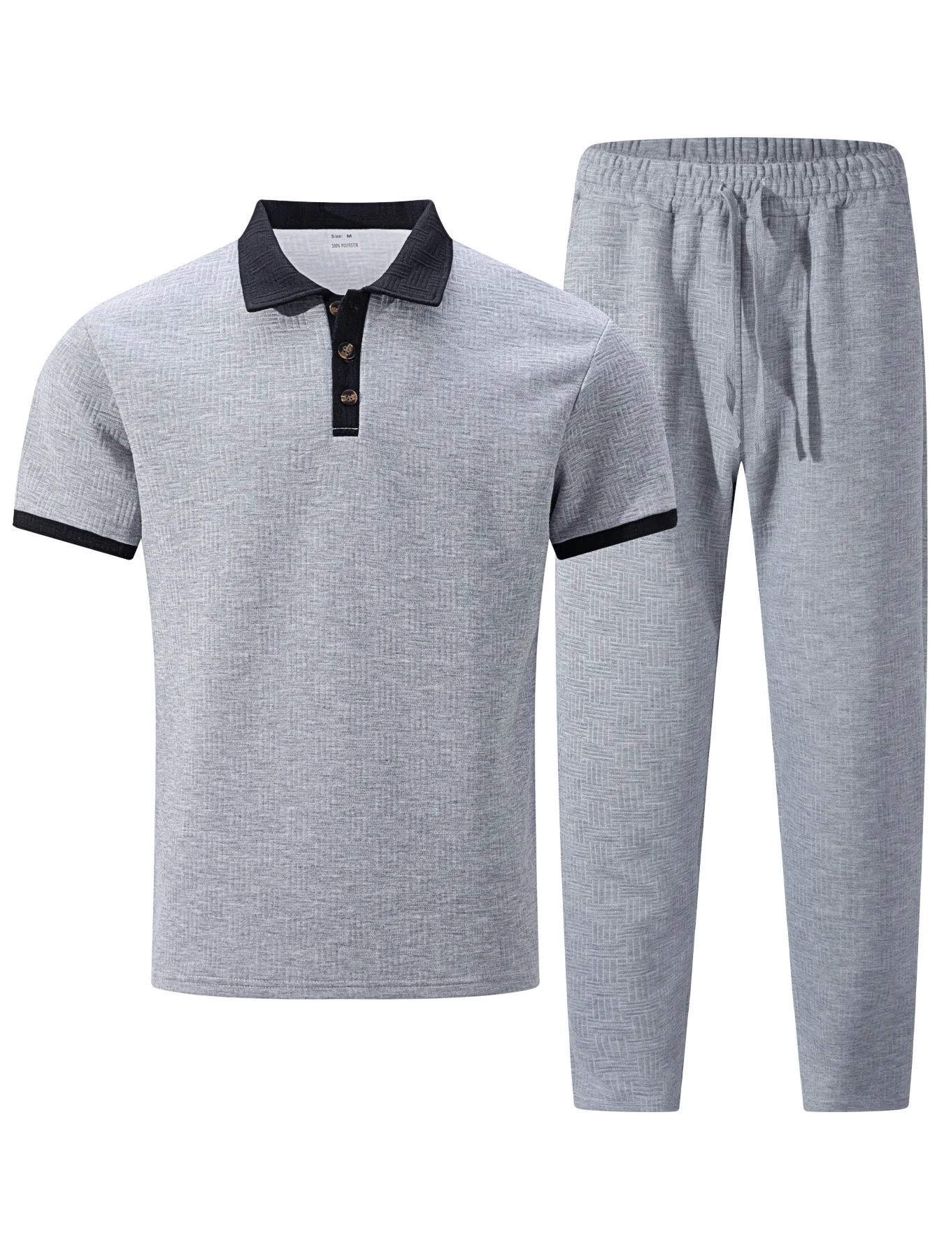 Spring/Autumn 2025 Men’s set: Casual color-blocking trendy short-sleeved Polo shirt and drawstring long pants