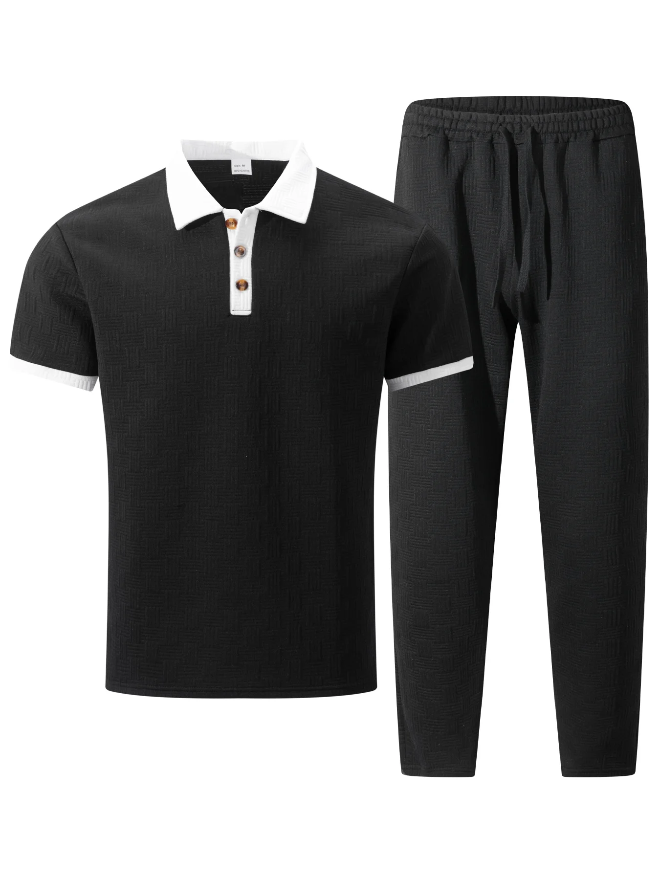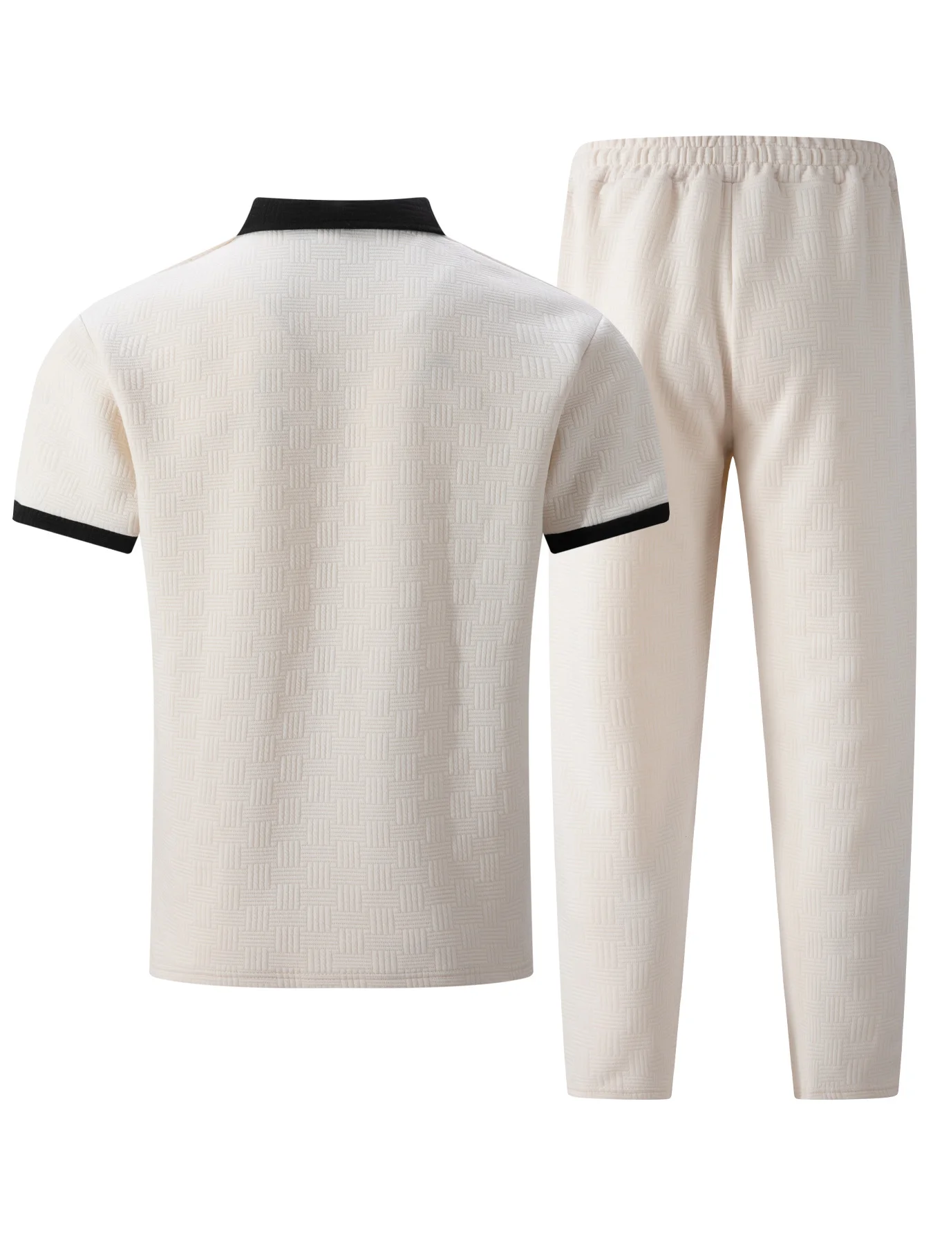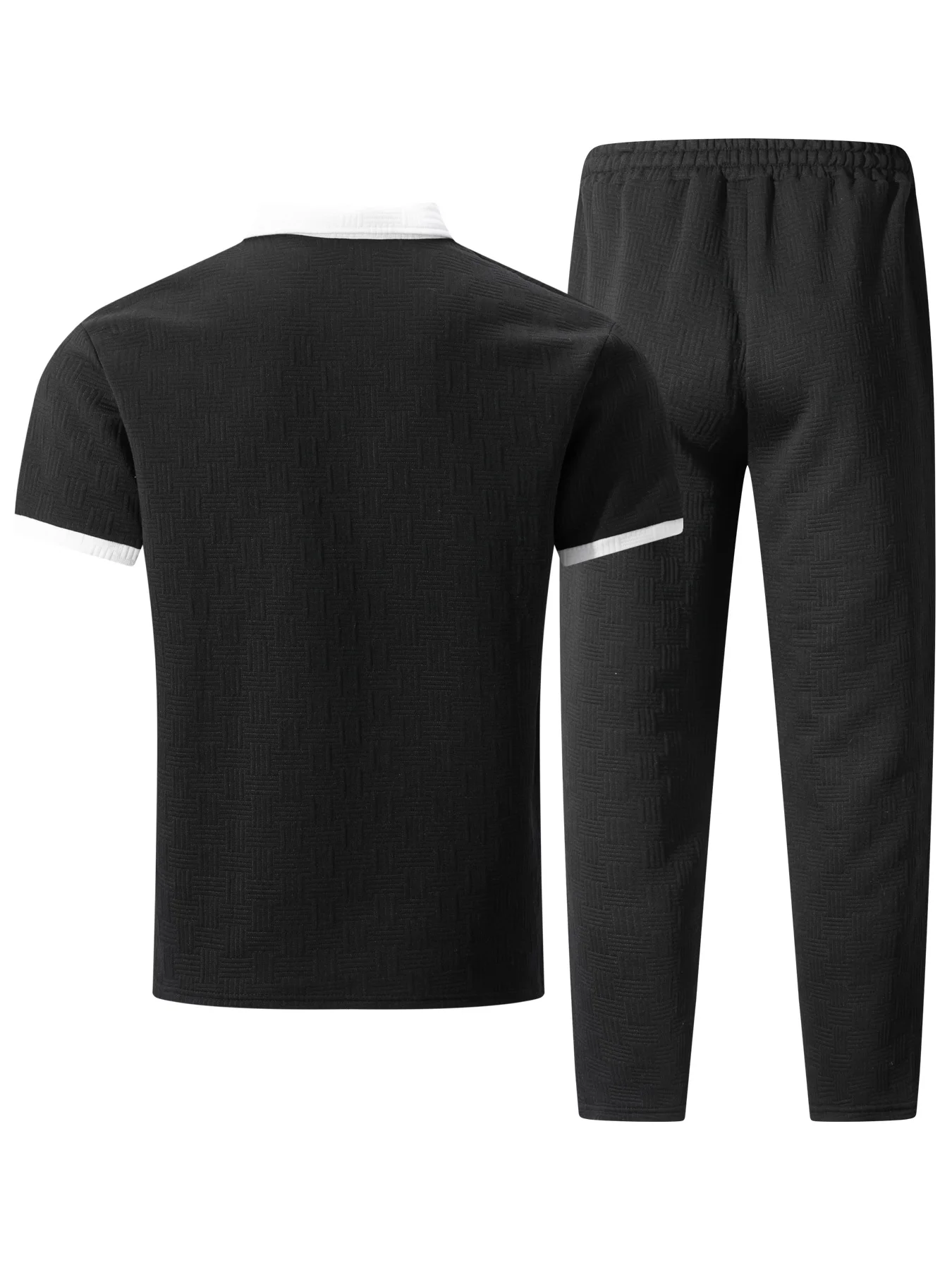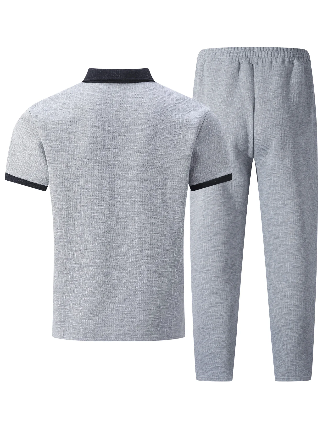 Spring/Autumn 2025 Men’s set: Casual color-blocking trendy short-sleeved Polo shirt and drawstring long pants