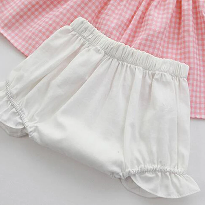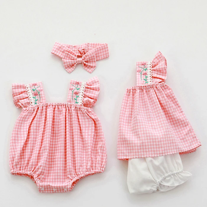 Summer Baby Girl Clothing Set Fly Sleeve Embroidered Lattice T-shirt+Shorts Newborn Baby Girl Rompers Sister Clothes
