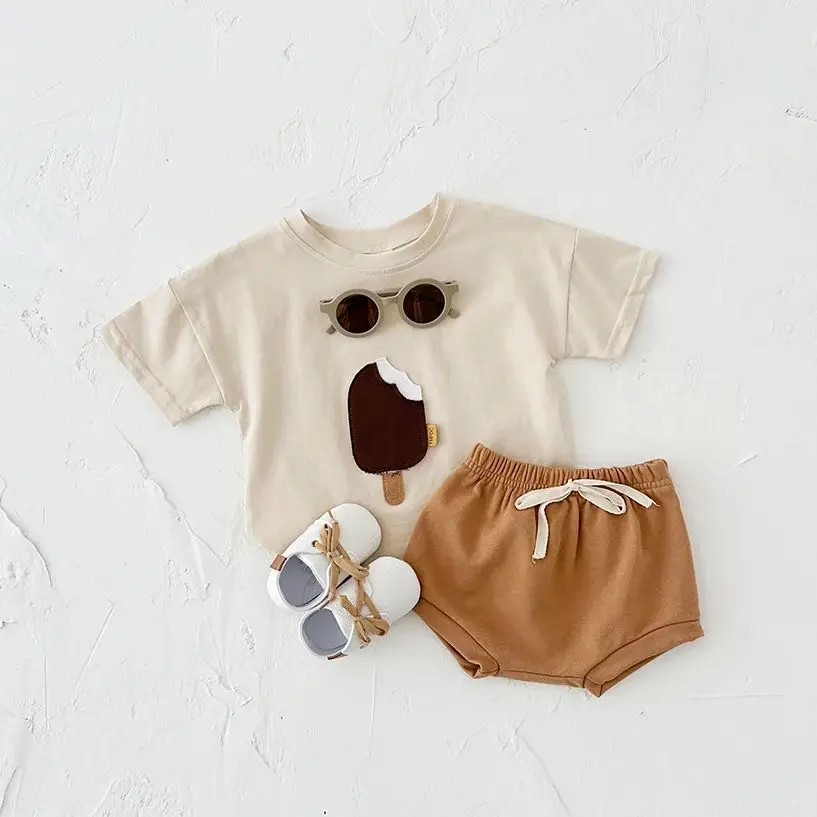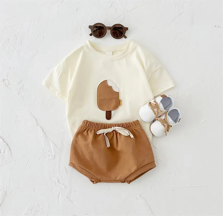 Summer Boys Children Clothing Baby Newborn Sets Girl Ice Cream Neck T-shirt+Triangle Shorts Cotton Infant Suit Kids 2PCS
