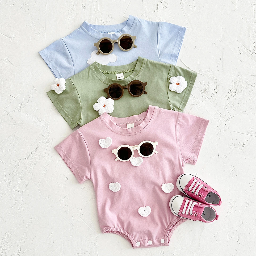 Summer Newborn Baby Girl Jumpsuit Short Sleeve Romper Baby Triangle Bodysuit Clothes Love Cloud Pattern Cartoon Boy Infant 0-18M