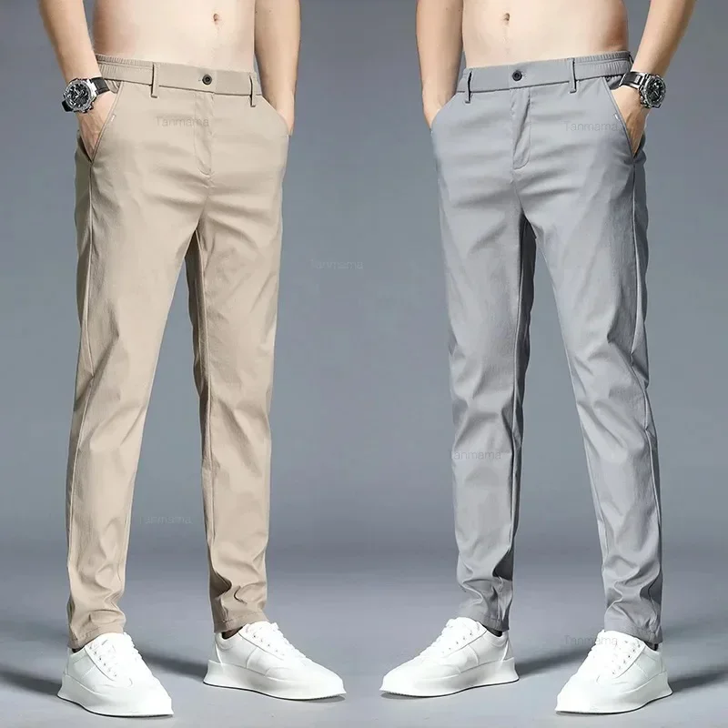 Summer Ultra-thin Men’s Casual trousers Slim Straight Elastic Ice Silk Sports Jogging Pants Fashion Korean Black Khaki Green