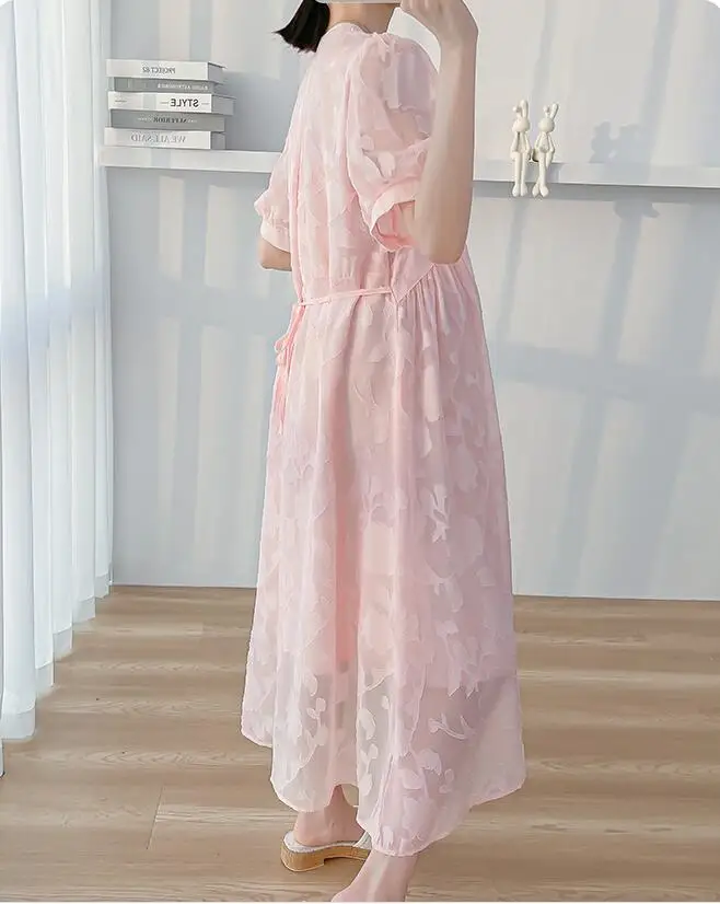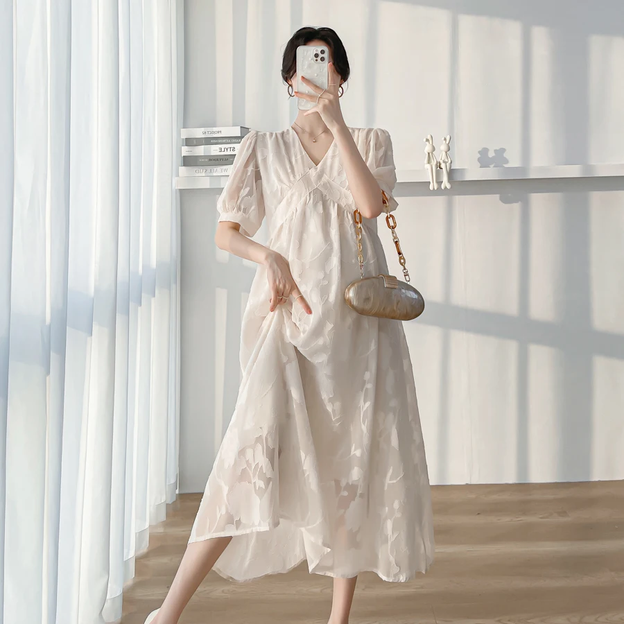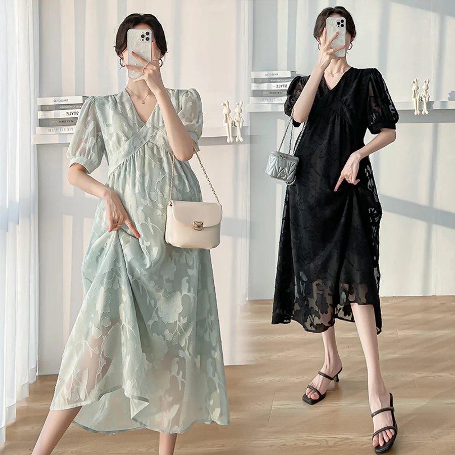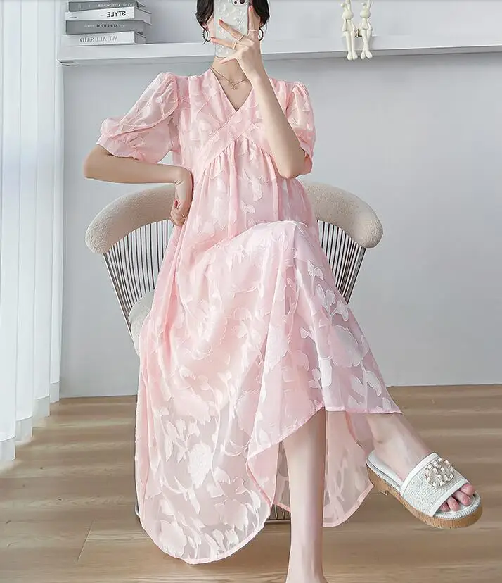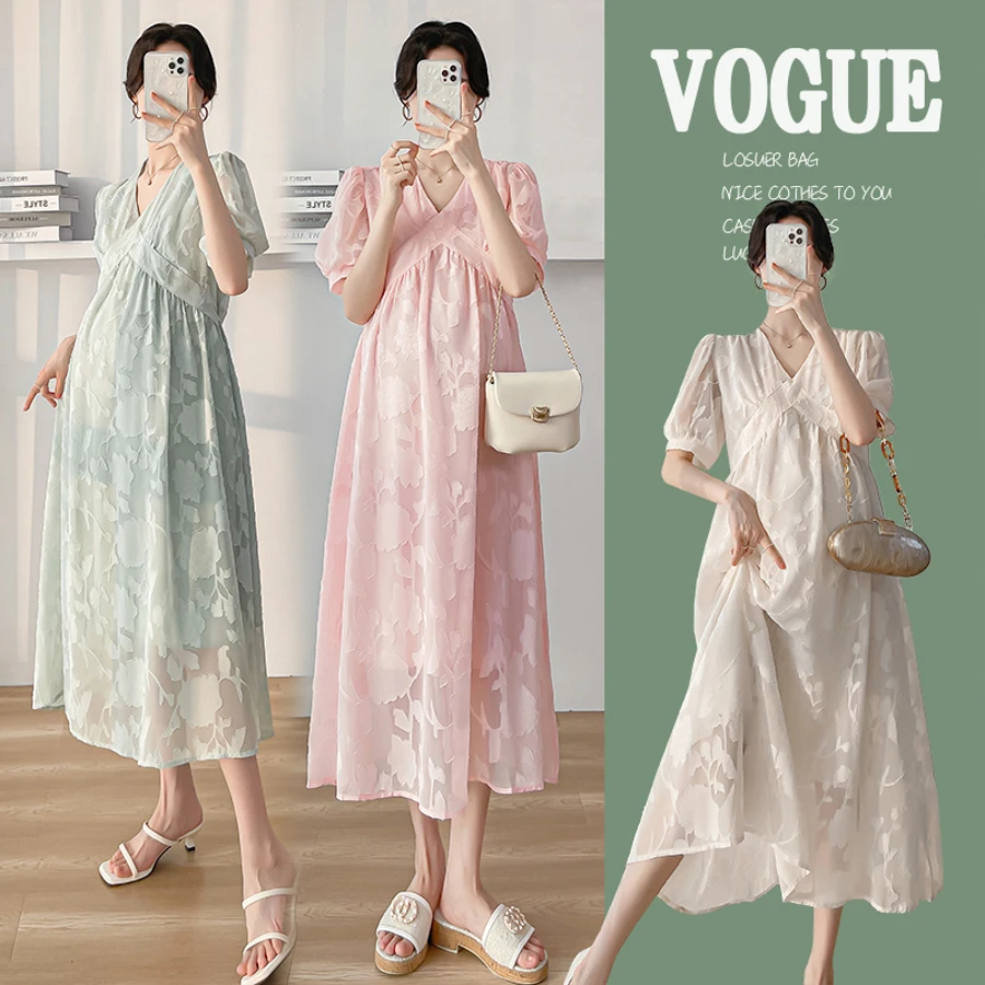Sweet Summer Maternity Clothes Fashion Pregnancy Lace Dresses Short Sleeve O-Neck Loose Pregnant Woman A-Line Dress with Lining
