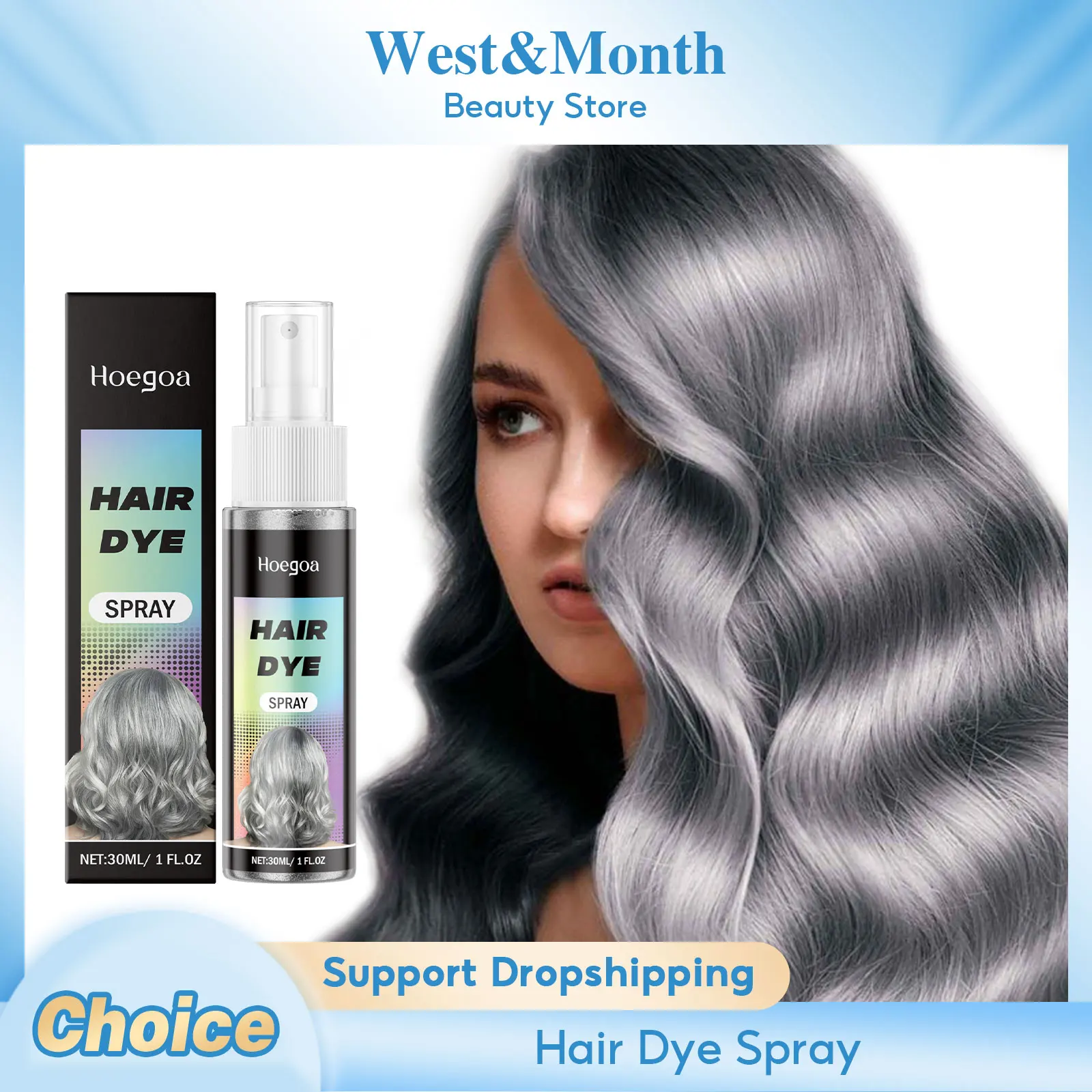 Hoegoa Temporary Hair Color Spray Silver Gray White Color Dye Natural Long Lasting Disposable Fashion Hair Styling Salon Beauty Makeup 30ml / 60ml