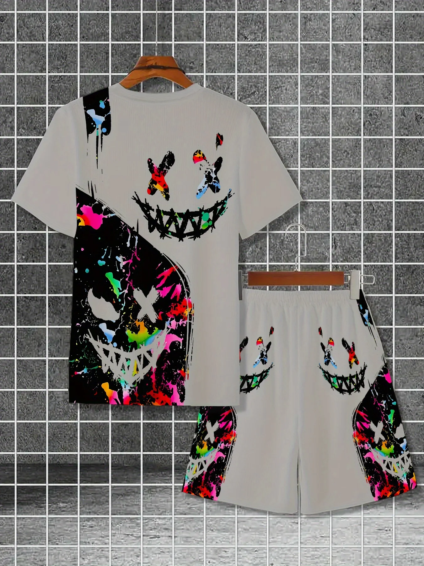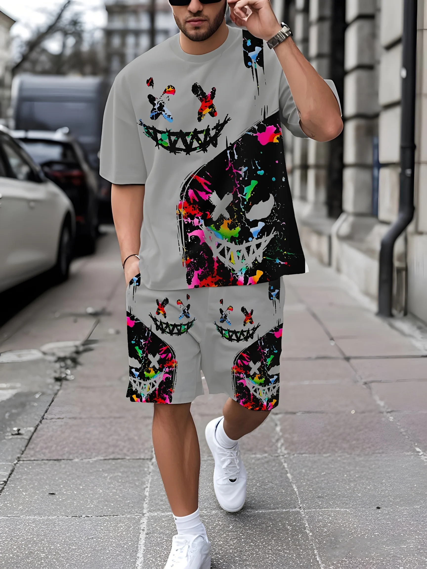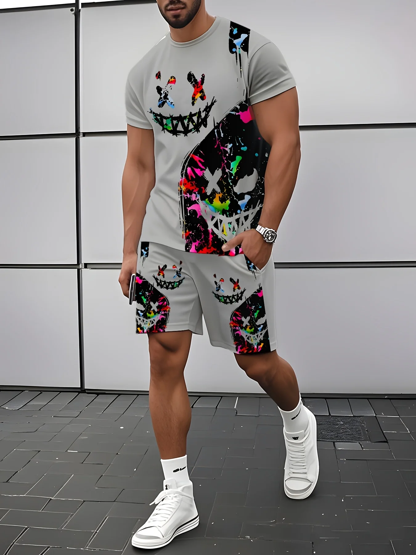 The 2025 summer new men’s casual suit features street fashion and hip-hop 3D printed patterns, and is comfortable and breathable
