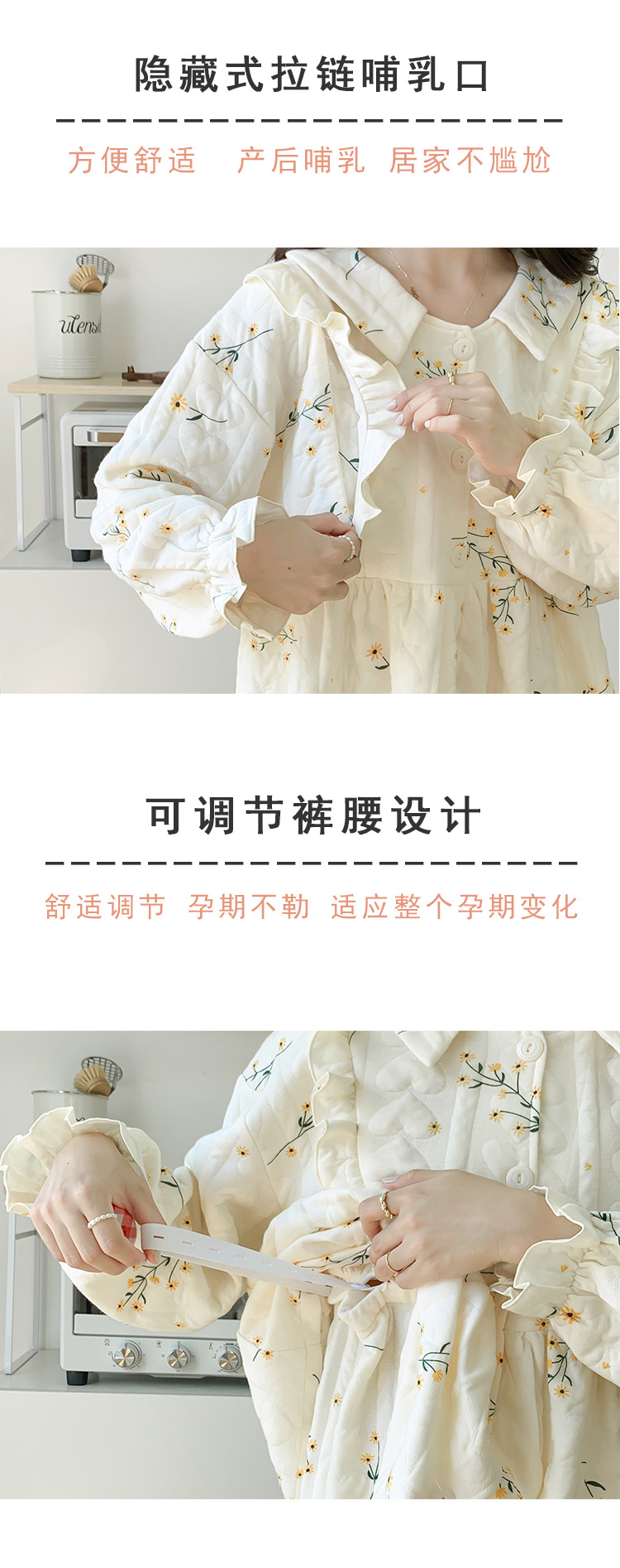 In order to provide better services, we only make products with good quality. The product has a convenient underwear to nurse babies, adjustable pants, and heat preserved coat, which can be worn in spring and summer, being ideal for women who are in the period of pregnancy and postpartum nursing, and making mothers appear beautiful and elegant.