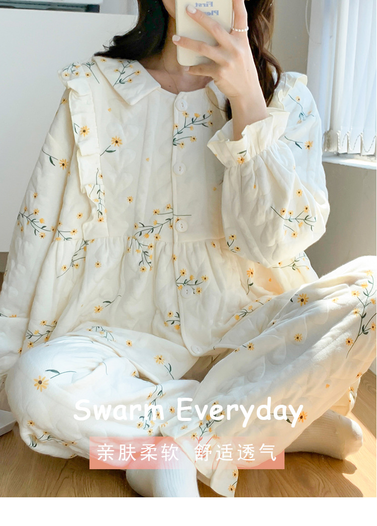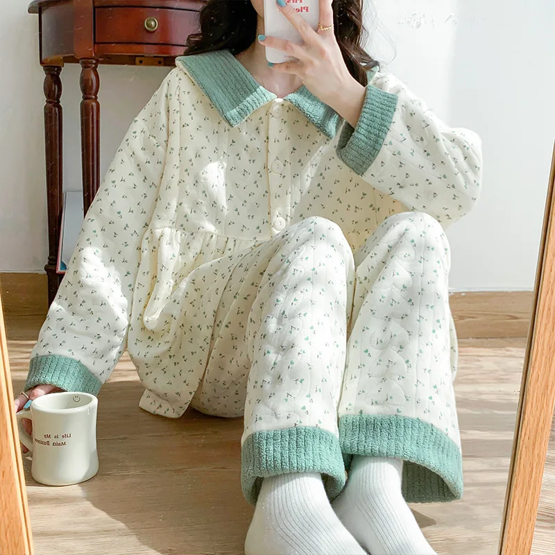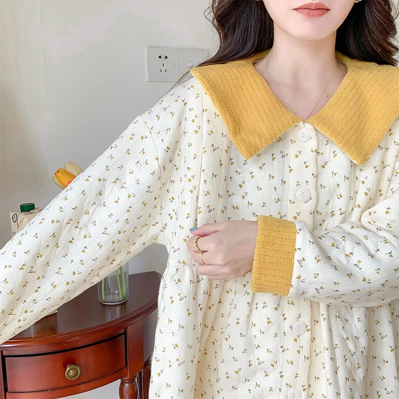 Thick Cotton Mother Nursing Pajamas Set Floral Sleepwear for Postpartum Mother New Maternity Pajamas Pregnancy Sleepwear