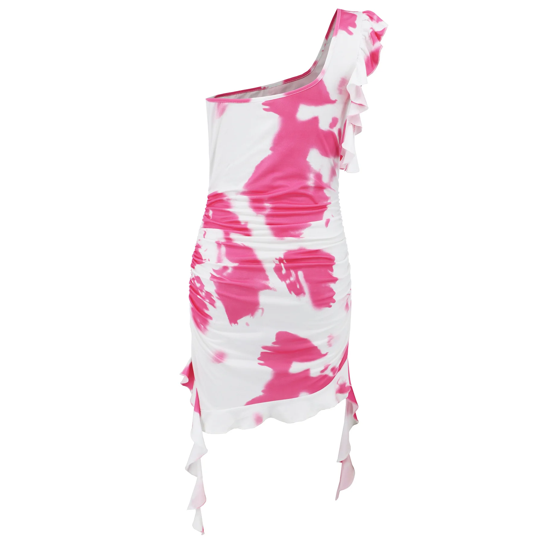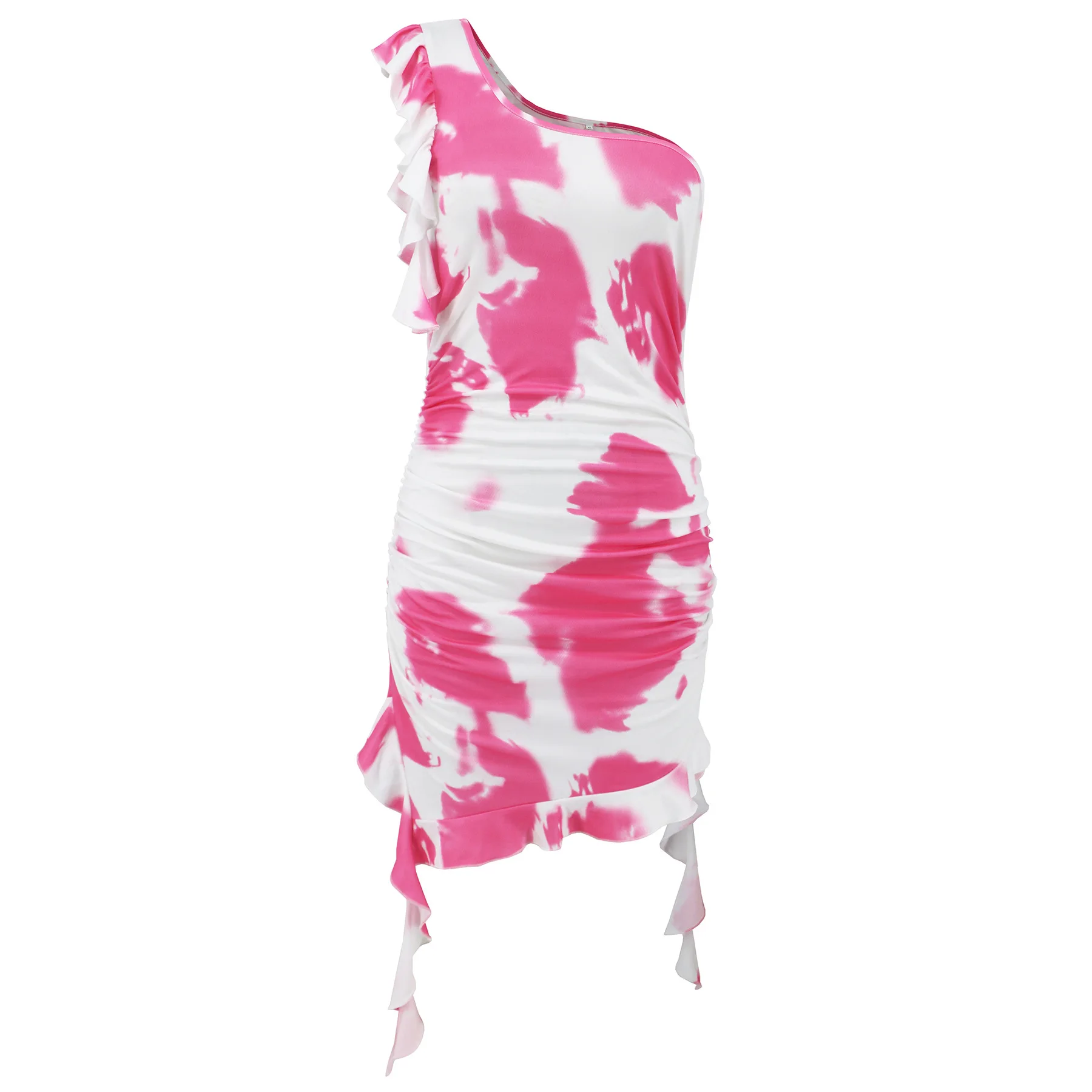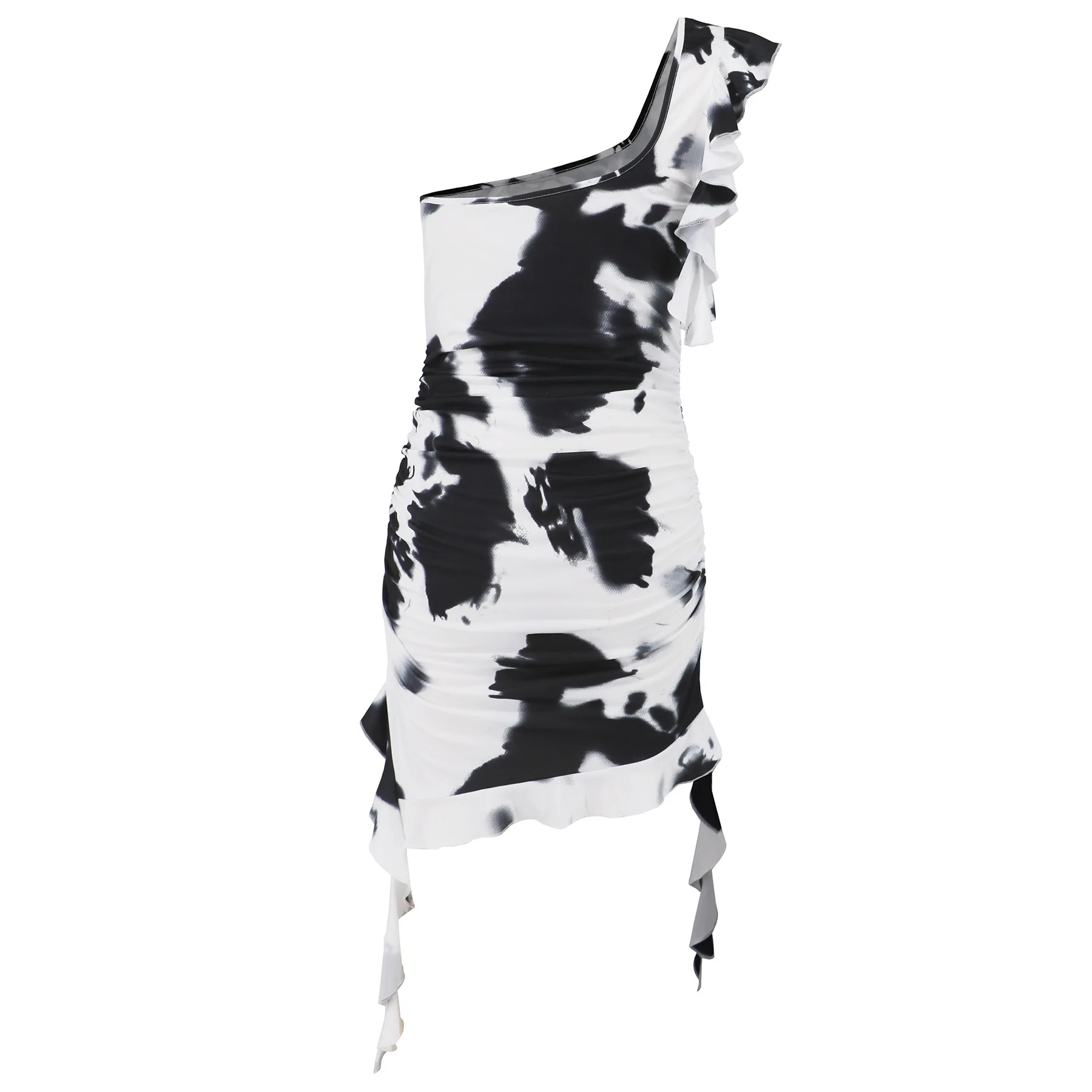 VigoCasey 2025 Summer Female One-shoulder Bodycon Mini Dress Women Sexy Print Short Dress Sleeveless Evening Party Tight Dresses