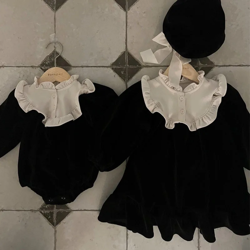 Winter New Baby Girl Long Sleeve Bodysuit Infant Christmas Clothes Fashion Princess Party Jumpsuit + Hat Cotton Girl Onesie