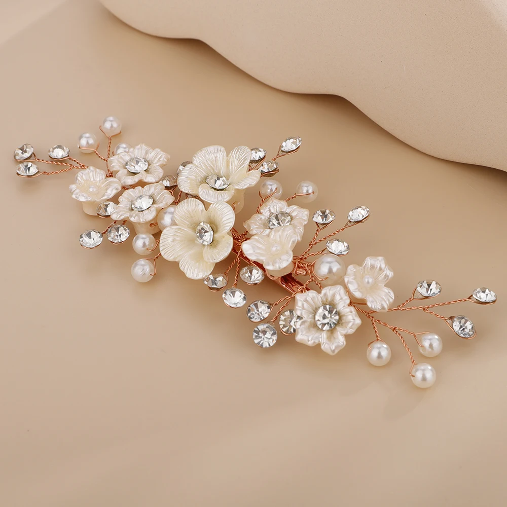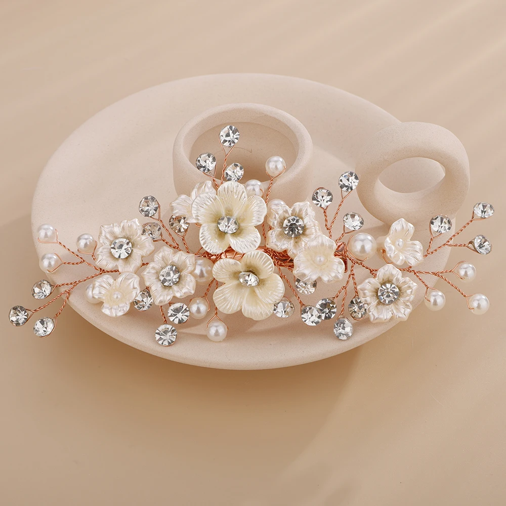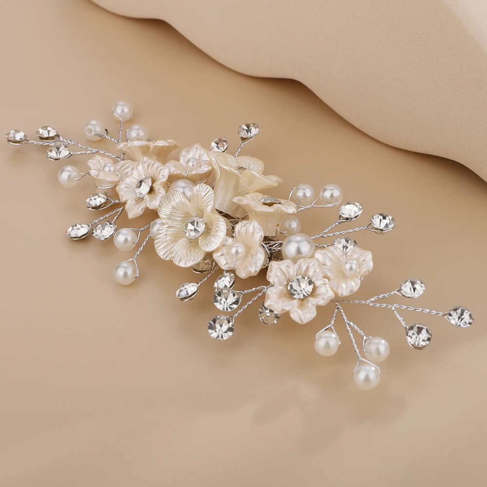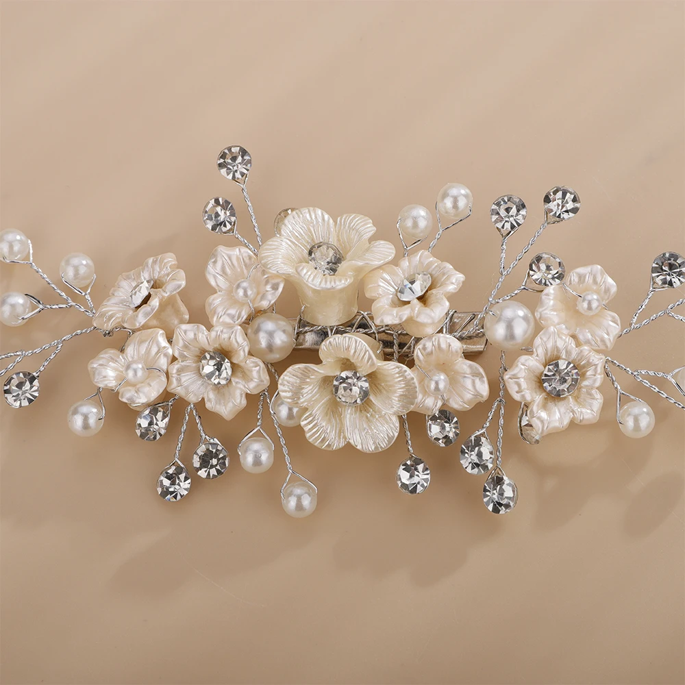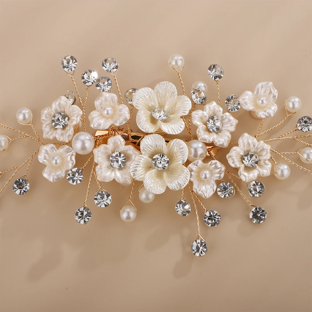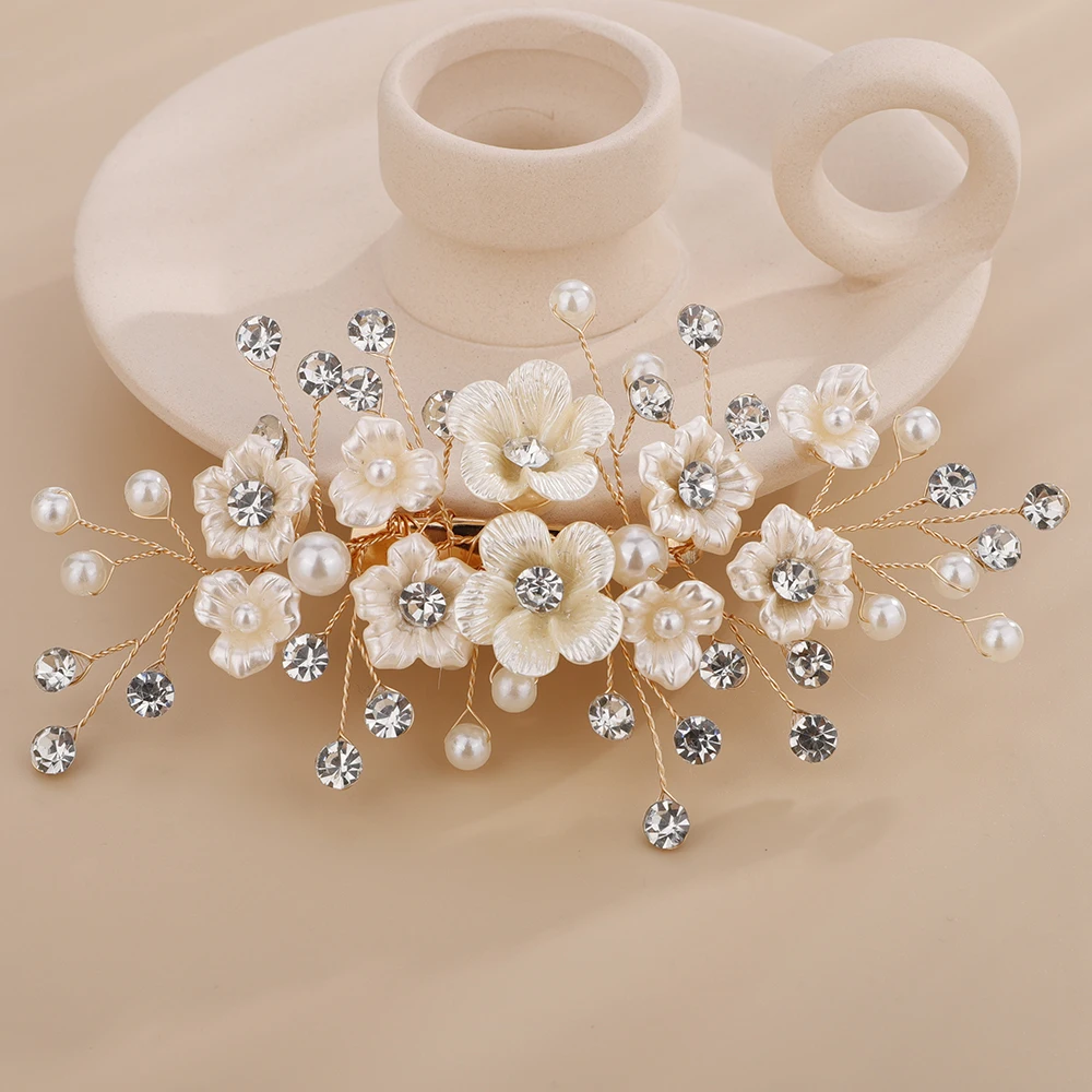 Women Wedding Headpiece Silver Gold Rhinestone Bridal Hair Clip Headwear Handmade Vintage Flower Pearl Hair Ornament Bride Tiara