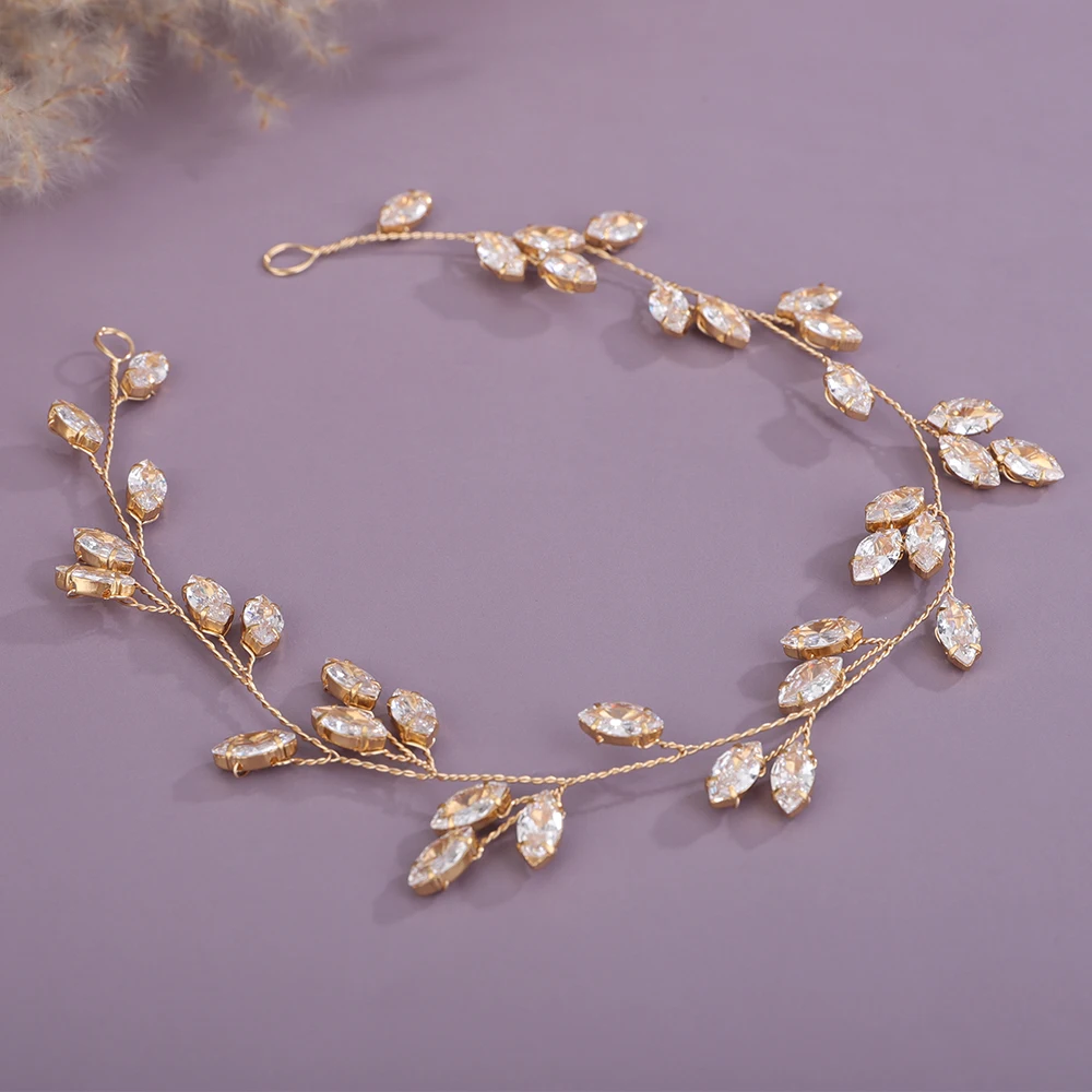 Women Wedding Zircon Headband Silver Handmade Bridal Hair Accessories Gold Hair Piece Jewelry for Bride Bridesmaid Party Tiara