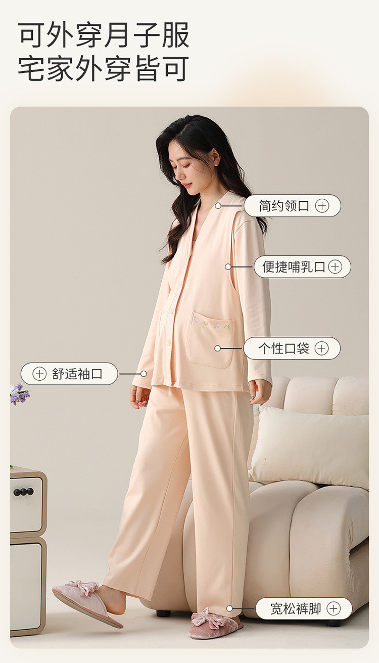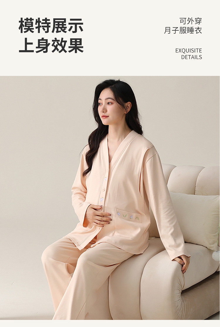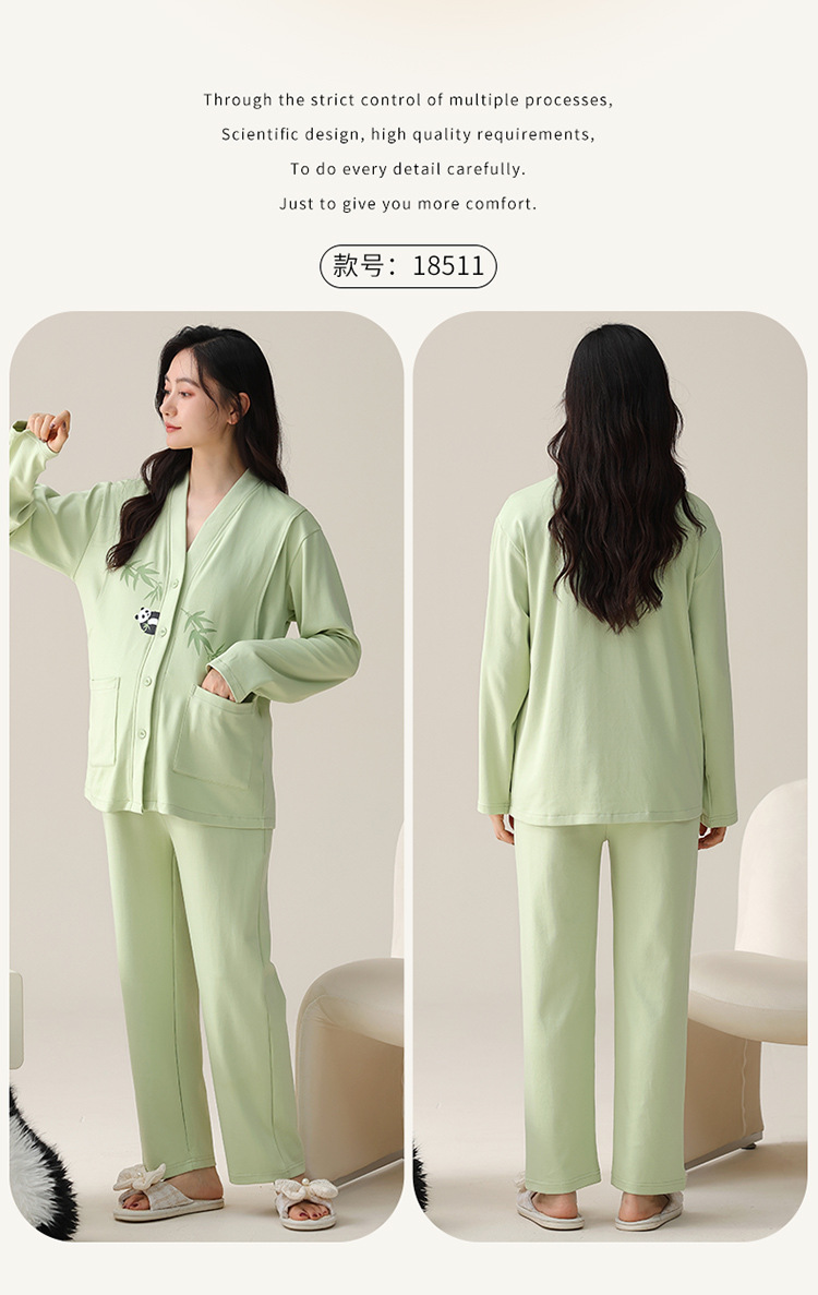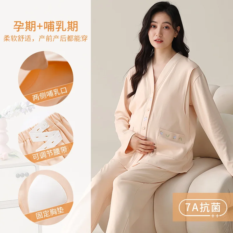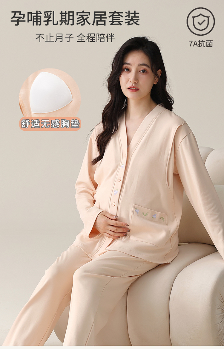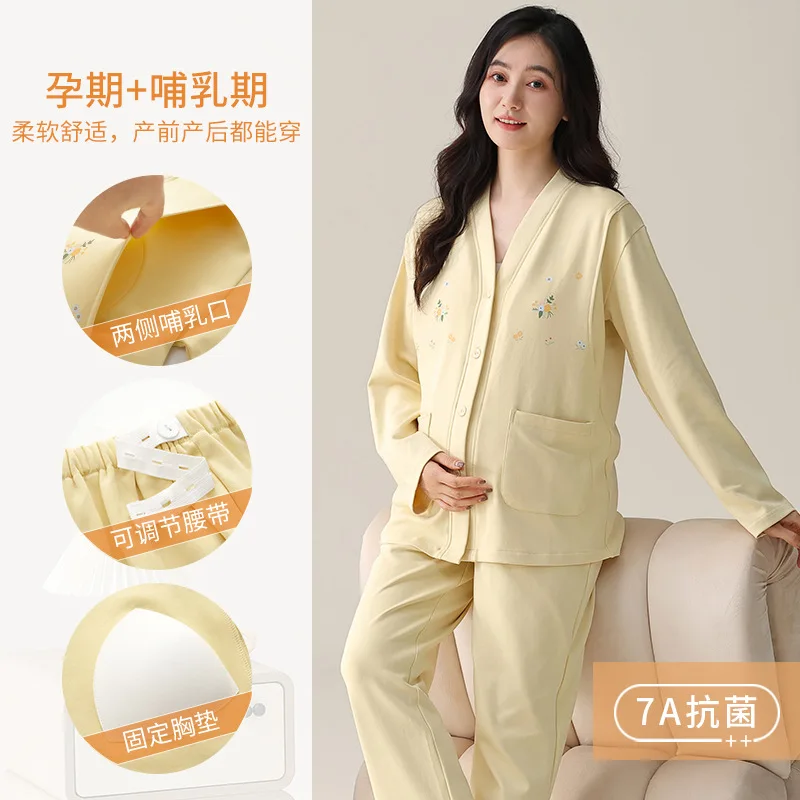Women’s Long Sleeve Pajamas with Chest Cushions for Spring And Autumn Postpartum Comfortable Pure Cotto Sleepwear for Pregnant
