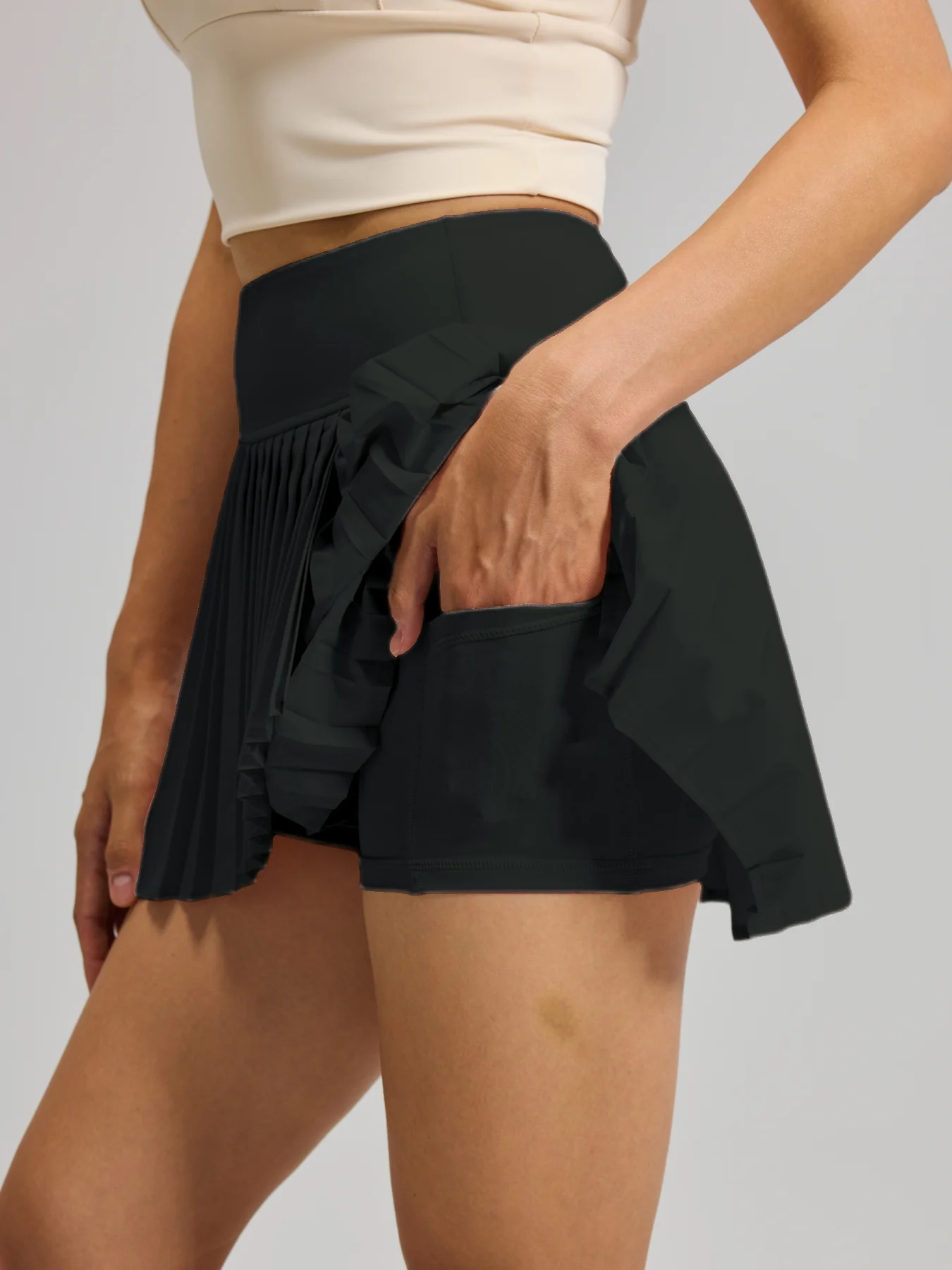 【Built-in shorts】: Featuring integrated shorts for superior coverage and confidence during high-energy activities like tennis or running.