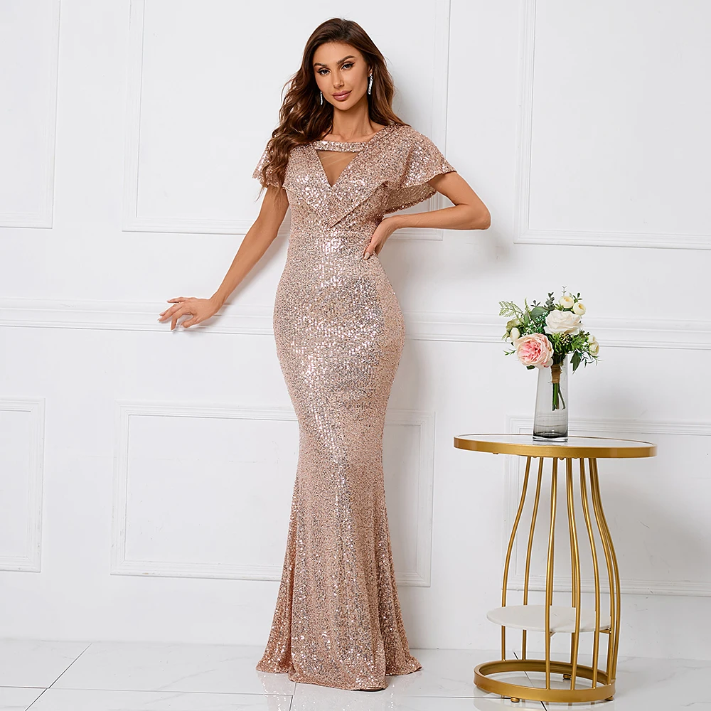 Be the first to review “YIDINGZS Elegant Long Gold Sequin Dress V Neck Party Maxi Dress Women Prom Evening Dress”